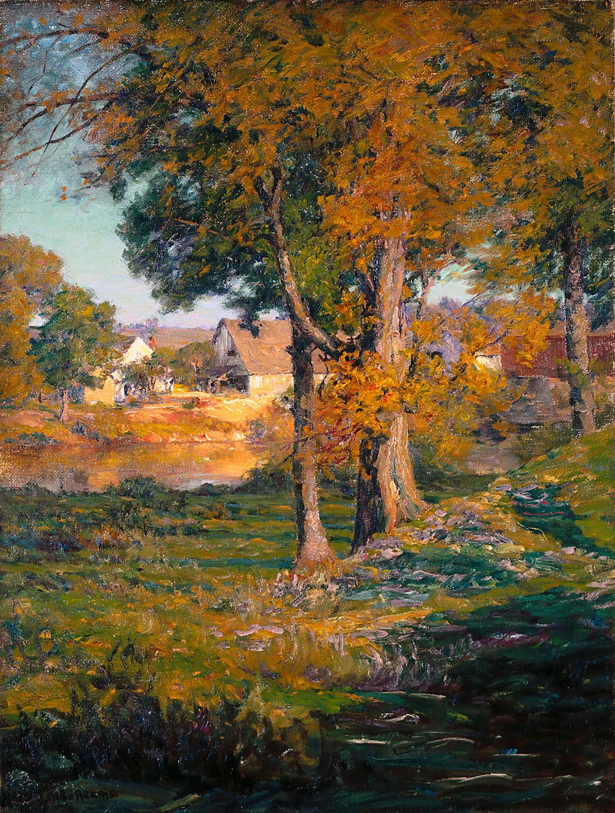 The Landscape painter John Ottis Adams [1851-1927] was born in Amity, Indiana, a small town south of Indianapolis. He attended Wabash College in 1871, but left a year later for the South Kensington Art School in London to study under John Parker. Adams returned to Indiana in 1876, eventually settling in Muncie.