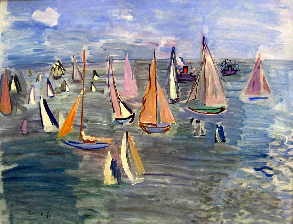 French painter in oil and watercolour, illustrator and designer, Raoul Dufy (1877-1953) was born at Le Havre. Took a job in commerce but also began in 1892 to attend evening classes at the municipal Ecole des Beaux-Arts, where he met Othon Friesz.