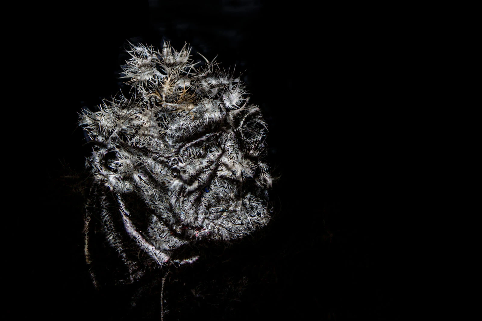 The shift from architecture to photography was bound to happen – in essence, photography provides exaltation on a sustained level, whereas architecture’s exuberant lure seldom lasts past the conceptual stages. Now a seasoned artist, Vitkon’s incredible visual lexicon shows significant shifts in perspective and subject matter over the years, although still preserving intact his reverence for form, the passing of time and most recently, his Israeli origins. The ‘Thorns’ photographs are stunning portrayals of shapes and silhouettes, carefully enveloped in thorns collected by the artist himself. The reason is evident: thorny flora is typical in Israel – it’s everywhere – so much that nobody even takes notice of it.
