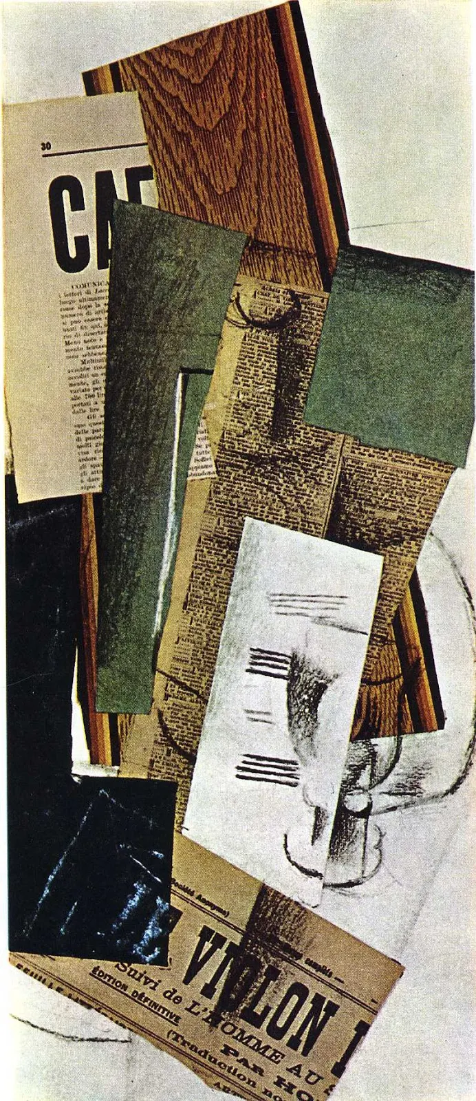 That year Braque created what is generally considered the first papier collé by attaching three pieces of wallpaper to the drawing Fruit Dish and Glass.