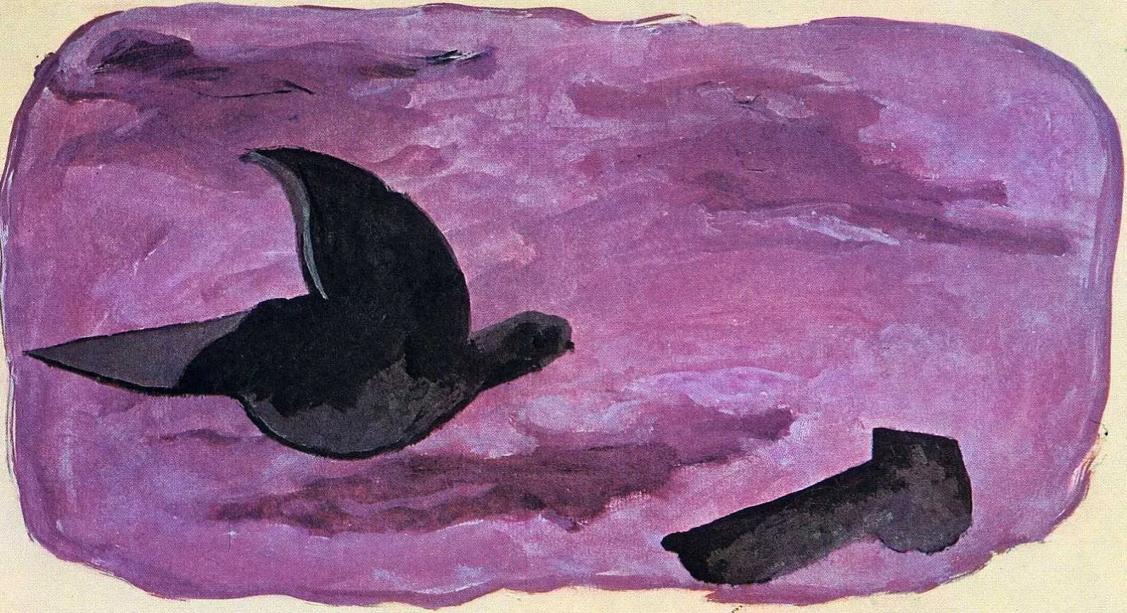 After the war Braque resumed his practice of executing a number of paintings on a single subject: first a series of billiard tables, then one of studio interiors, and then one of large, lumbering birds that seem charged with some forgotten archaic symbolism.
