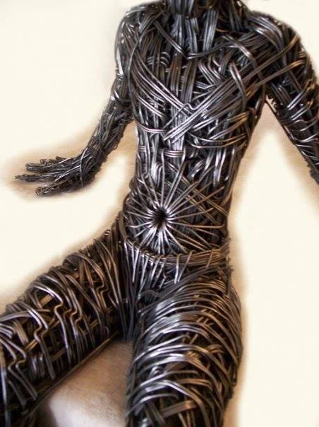 British sculptor Richard Stainthorp captures the beautiful energy and fluidity of the human body using wire. The life-sized sculptures feature both figures in motion and at rest, expressed in the form of large-gauged strands that are densely wrapped around and through one another. By doing this, he gives the work an undeniable presence. Stainthorp also allows the bent wires to shine by keeping their metallic appearance free from any obvious painting or additions.
