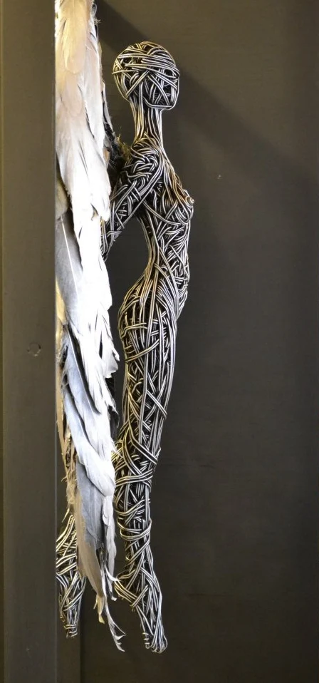 Stainthorp has created these alluring artworks for almost 20 years. They don’t have any facial features, but through their body language, we understand their emotions. Some look as though they’re falling and communicate a feeling of freedom or infinite possibility. Another sculpture has a breathtaking set of wire “wings” that appear as its shield. To think that Stainthorp articulates all of this through something as ubiquitous as wire is incredible.