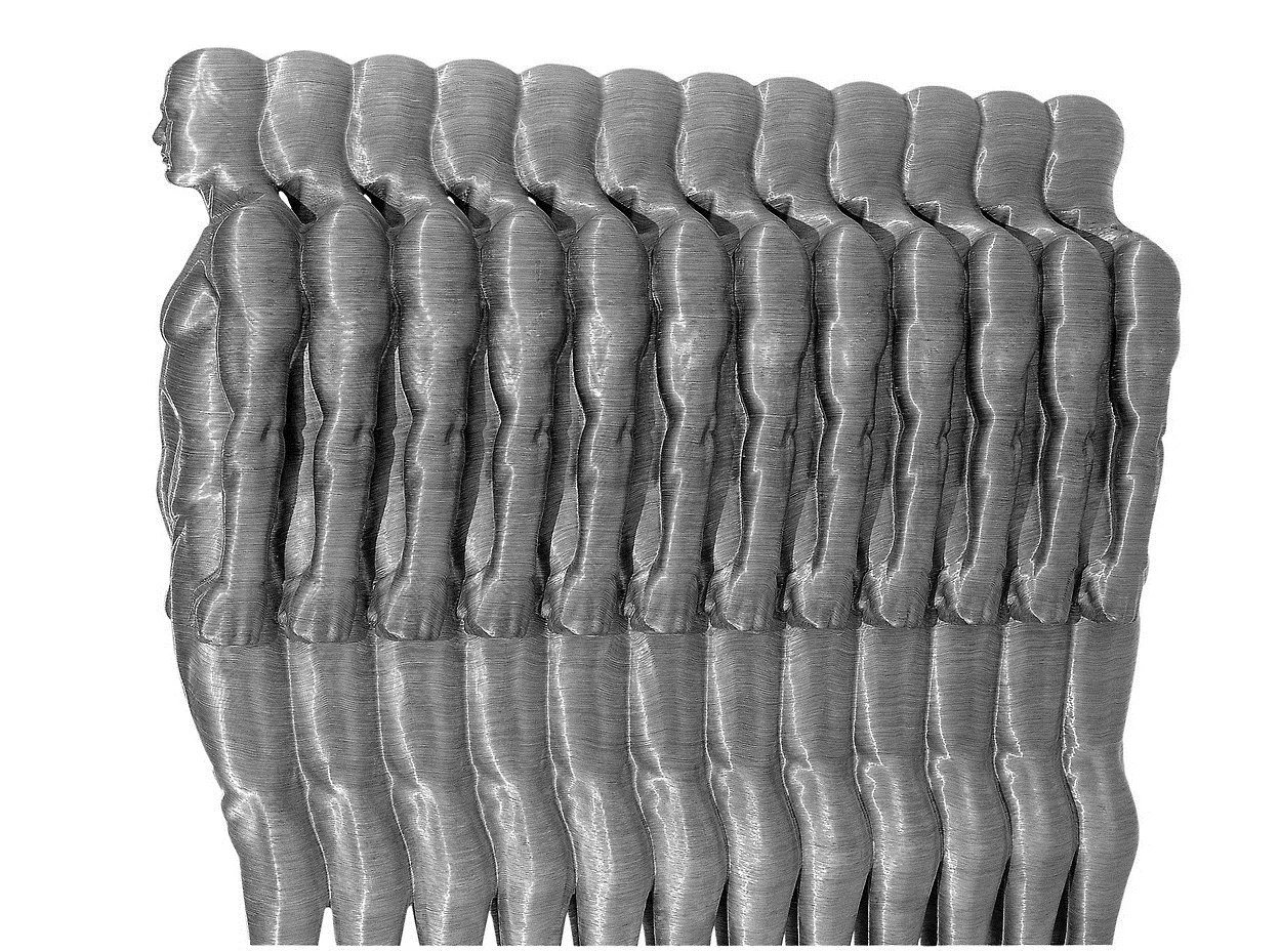 Ogni pezzo ha uno spessore di diversi pollici poiché ogni piano che forma l'immagine finale è distanziato di qualche dito, conferendo ai ritratti una certa profondità e dimensionalità che è difficile trasmettere in una fotografia.