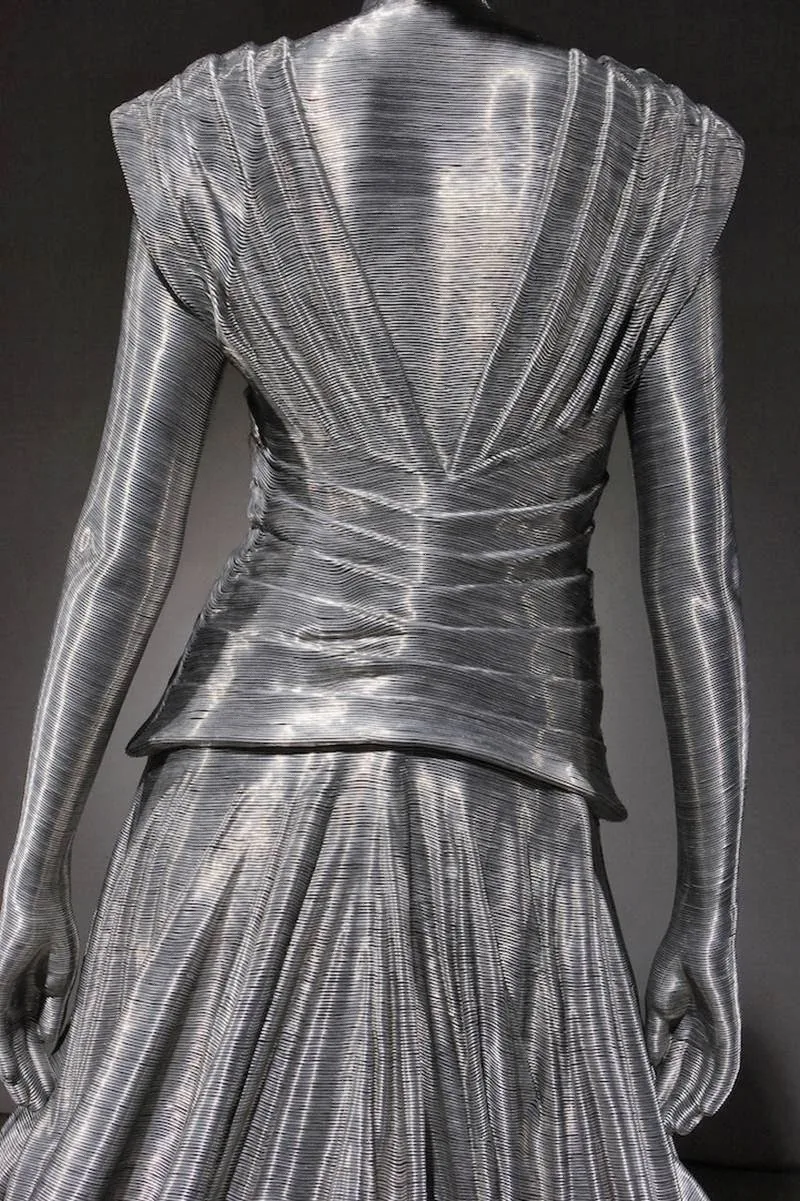 While it’s true that in some places there is a smooth, sinuous flow to the metallic lines, in others the patchwork of shapes and angles lends a fascinating texture to the creation.