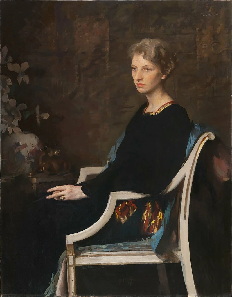 On canvas, Tarbell repeatedly depicted modern life in terms of the past, arranging his female subjects in quiet interiors surrounded by icons of New England's glorious past, such as gate-leg tables, Chippendale chairs, and incense jars.