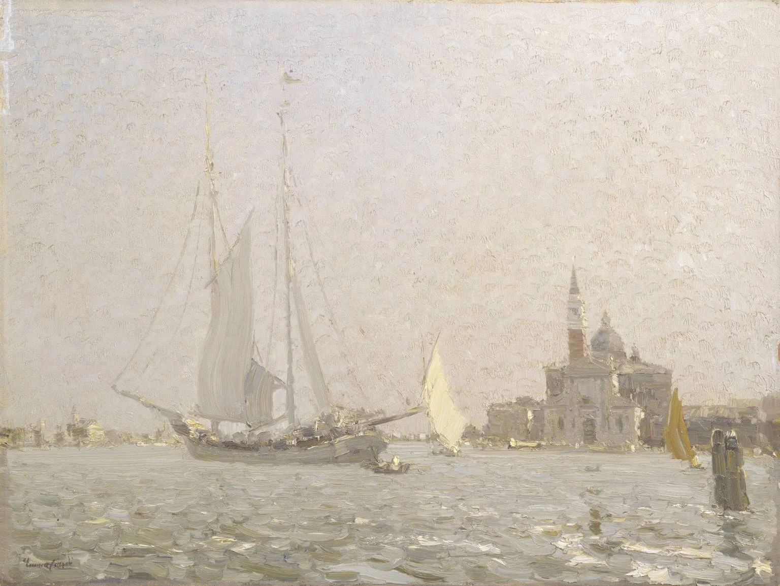 Il primo dipinto di questo genere, Villa d'Este, comparve alla Biennale del 1905 e venne completato dalla galleria Marangoni di Udine; nello stesso anno a Monaco di Baviera Portantina fu premiato con la medaglia d'oro e acquistato dalla Pinacoteca di quella città; nel 1909 alla Biennale veneziana Rondini e farfalle venne acquistato dalla Galleria nazionale d'arte moderna di Roma, dove si trova tuttora; nel 1910 guadagnò una medaglia d'argento a Bruxelles.