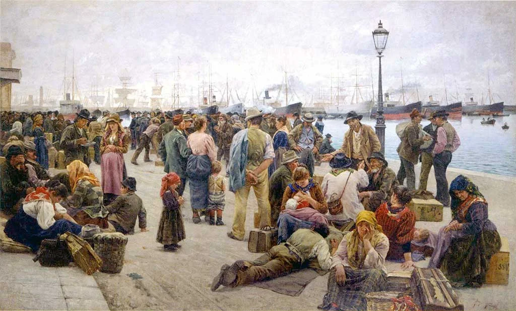 The monumental painting The Emigrants shows a common situation in Italy after the unification process.
