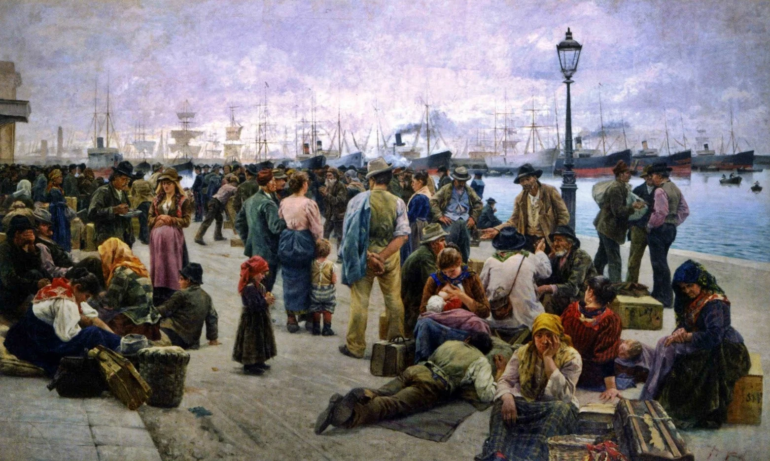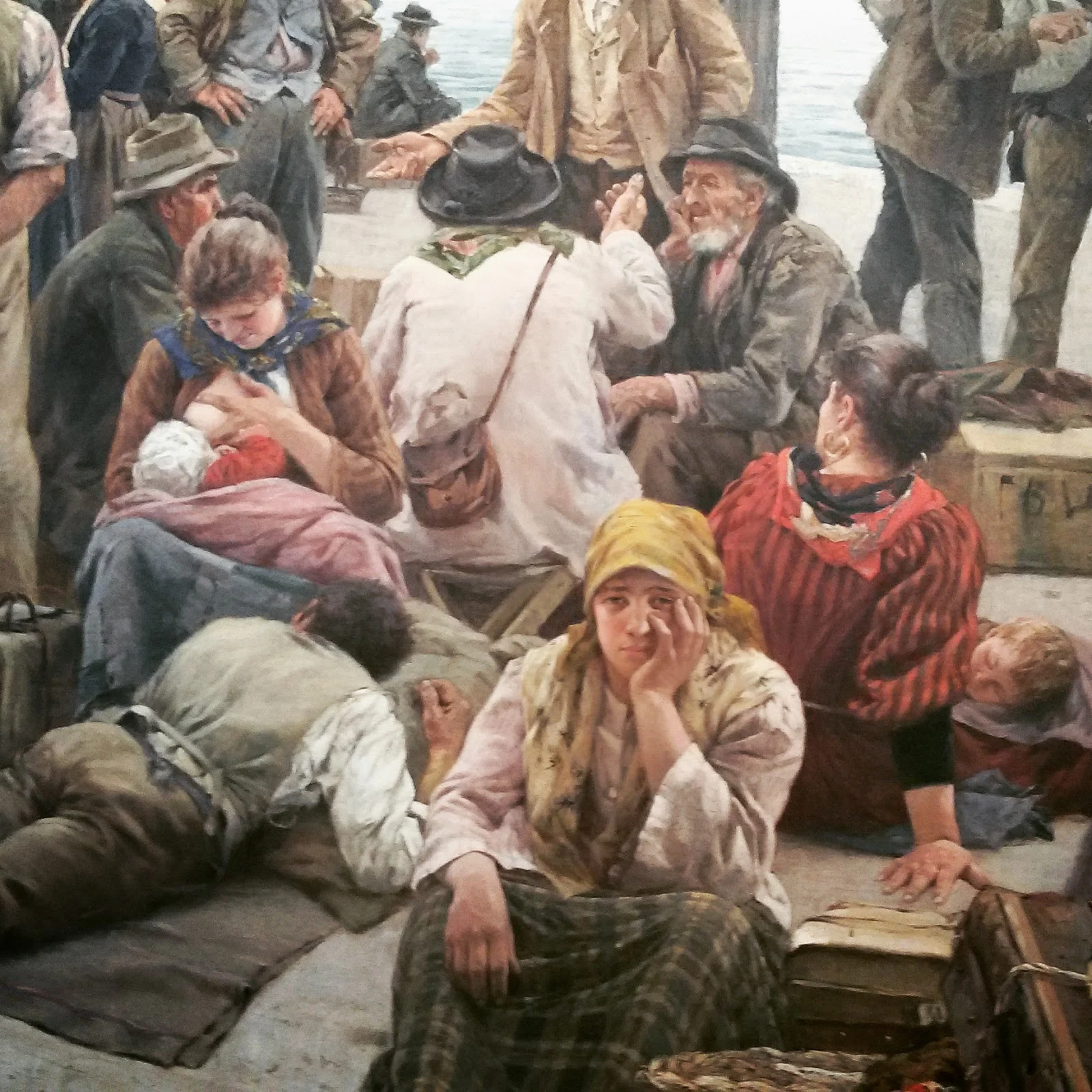 La malinconia e le condizioni di grande povertà di chi lasciò la propria terra sono ben rappresentate nel quadro e esprimono i disagi degli anni in cui fu realizzato il dipinto: la prima fase migratoria, in cui partivano intere famiglie.