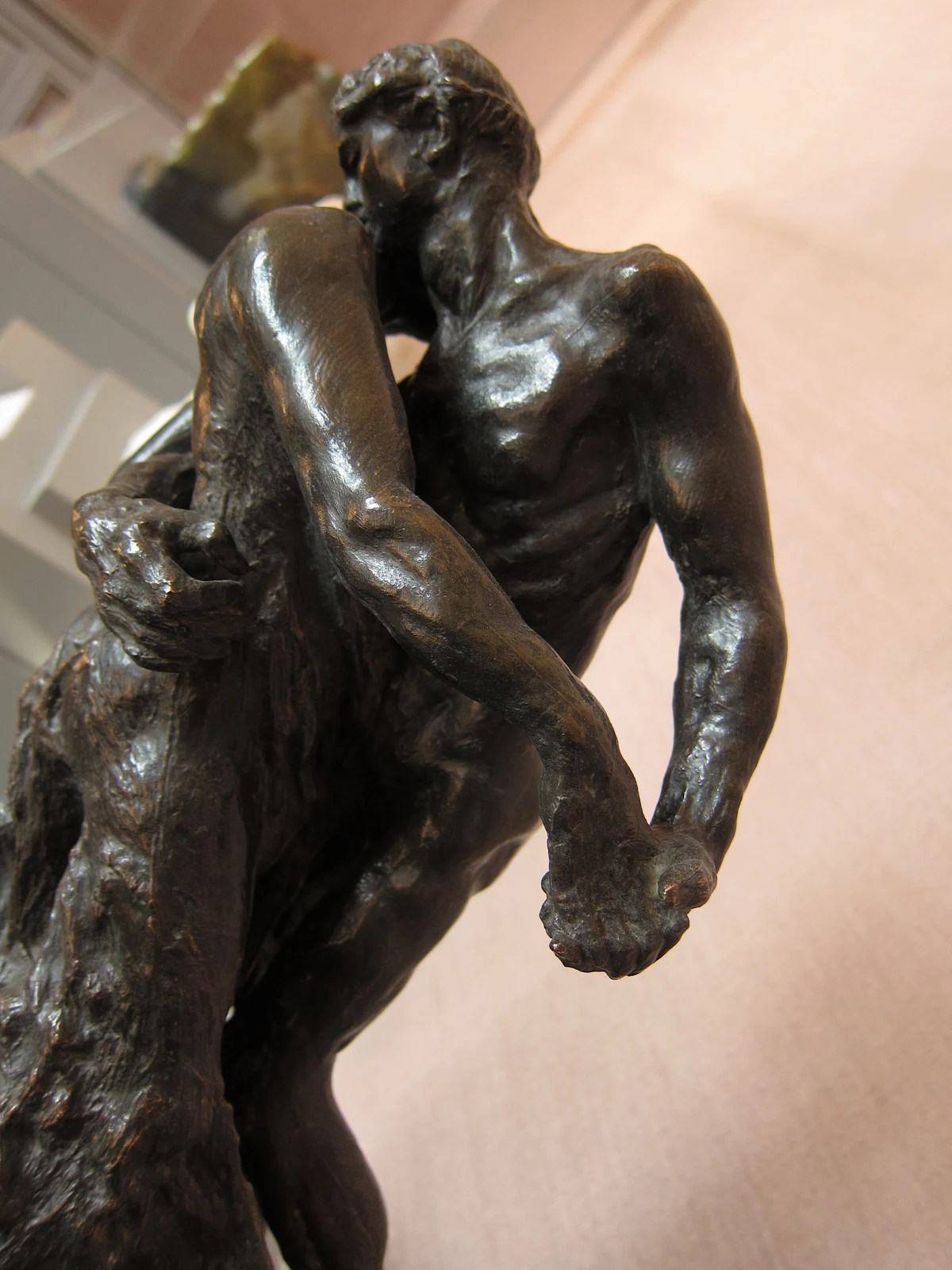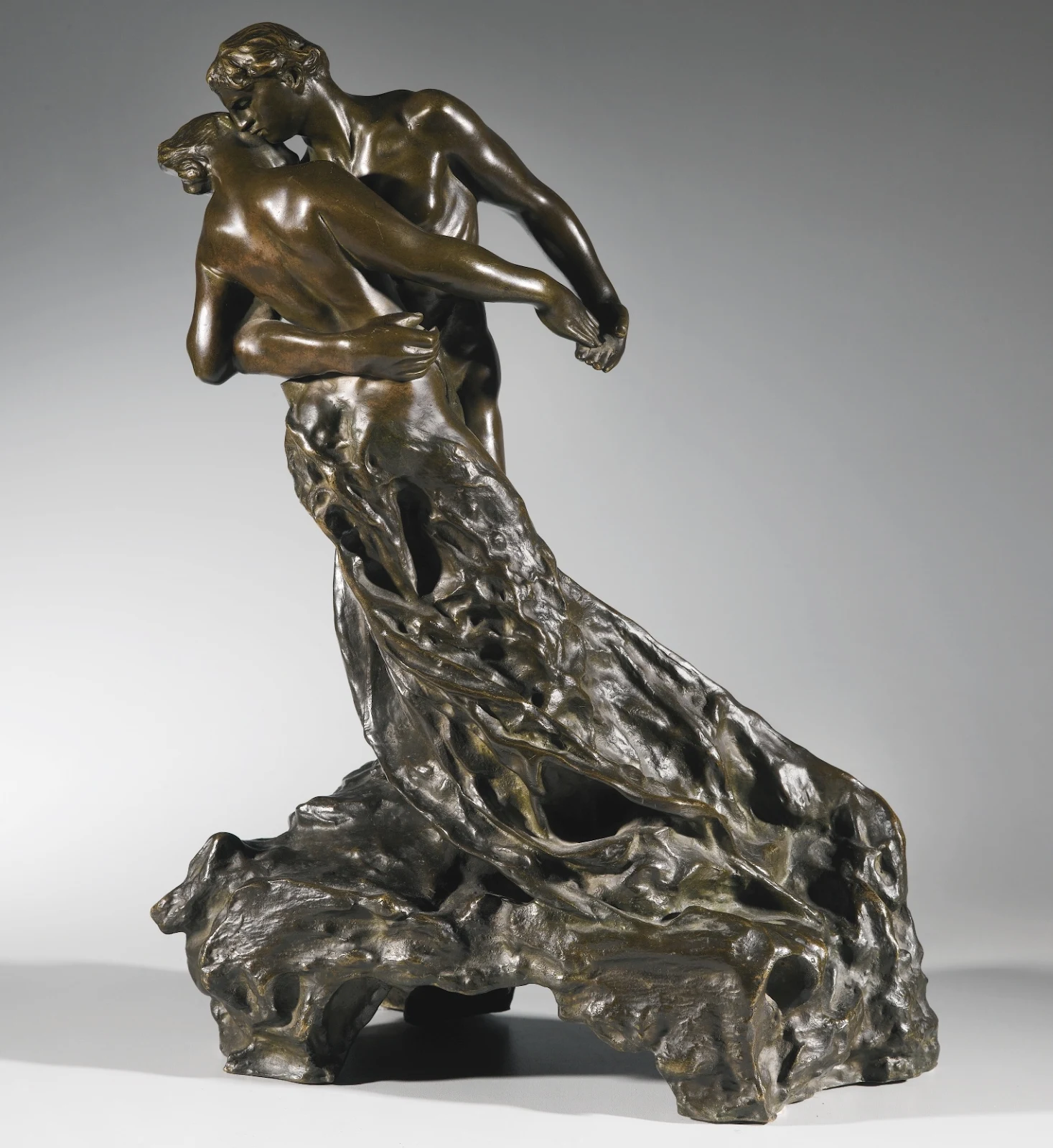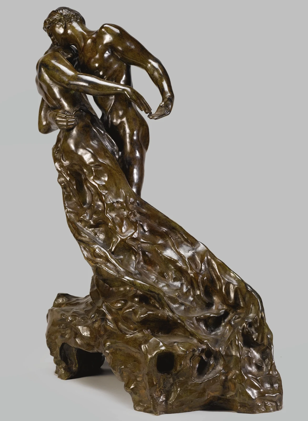 The present work incorporates several of Claudel's modifications, as here the man's lips rest tenderly against the woman's cheek, rather than against her neck as in other versions.