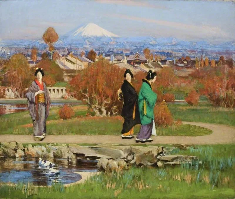 A crucial formative experience for the artist was the trip that he made to Japan with Edward Atkinson Hornel 1893-1894, during which he studied Japanese graphic art and painted a number of portraits of geishas.