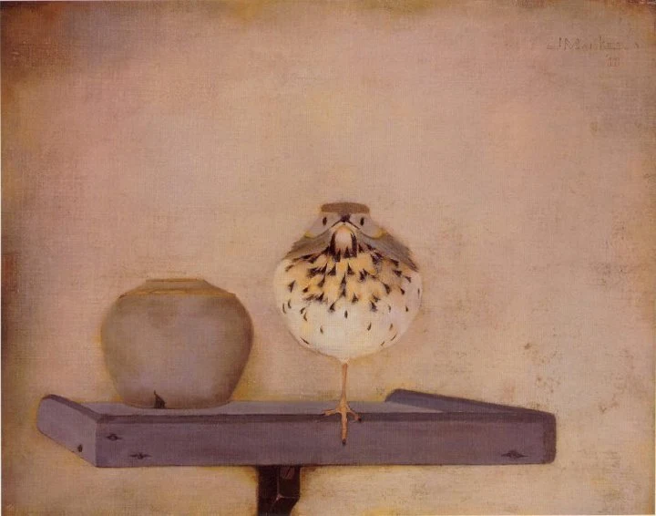 Mankes studied and then sketched his subjects (often birds and farm animals) "until he knew them by heart, and then painted them from memory". One of his favorite animals (he kept it in his room) was an owl, sent to him by his benefactor Pauwels. Mankes used a glazing technique, in which a large number of layers of paint on an opaque base "lend a fairytale-like quality to the owl".