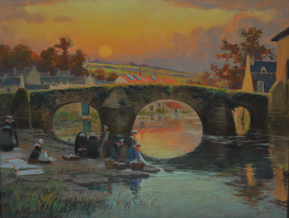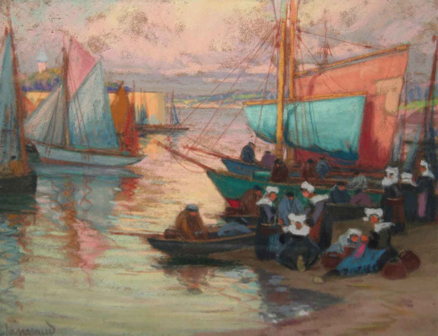 Mathurin Janssaud (1857-1940) was born in Manosque, Provence. Like many other painters, he lived and painted in Paris. But the reputation of Concarneau draws and before the First World War, he dropped his native Provence for changing skies of Brittany, which became his only source of inspiration. A Concarneau, it is the local color they are looking for.