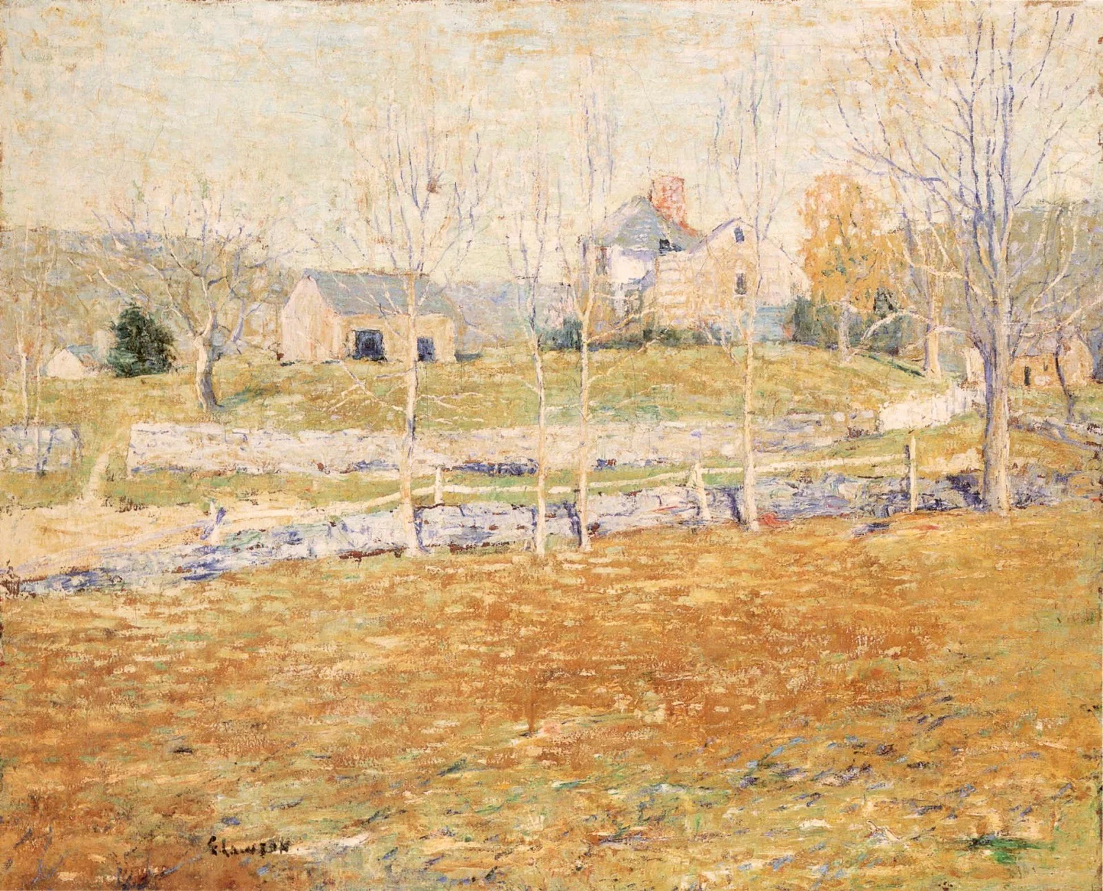 Ernest Lawson (1873-1939), a progressive artist and member of a group of artists called The Eight, achieved early recognition with his impressionist landscape paintings but later in life experienced personal tragedy and artistic isolation. Born in Nova Scotia in 1873, Lawson studied at the Art Students League, New York, from 1891-1892 and took summer classes in Cos Cob, Connecticut, under J. Alden Weir and John Twachtman. Lawson’s early work has delicate tones and harmonious textures reminiscent of Twachtman’s style. While living in France from 1893-1896, Lawson briefly attended the Académie Julian.