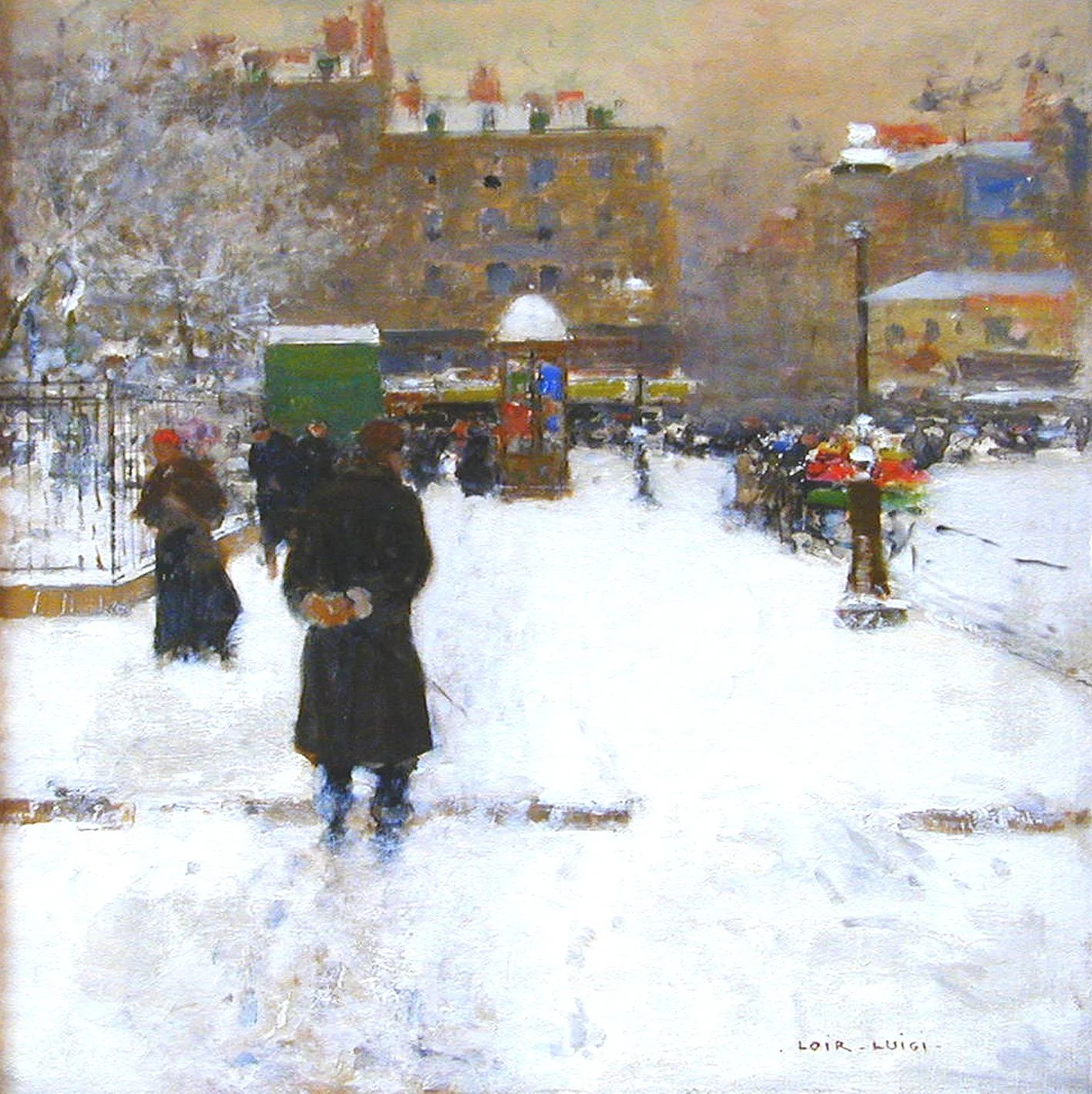 Mariani wrote that "Where his brush excels is in the rendering of the effects of the snow, the settings of the sun, and the banks and waves of the Seine". (Album Mariani) Loir’s often impressionistically-executed works exhibit qualities of a dedicated study of the changing light effects on the environment, from the early afternoon to dusk, allowing him to focus his audience’s attention on a source of light punctuating the otherwise cool colors of the canvas.