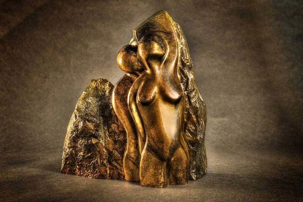 Transitioning into the life of a full-time artist required Harris’s passion to become his profession as well. Prior to developing as an artist, Harris spent many years in the area of sustainable urban development (specifically real estate and hotels), a conventional career in which he was quite successful, but not fully satisfied. The transition into a wholly fulfilling trade, was both challenging and exciting. The artistic passion that had existed just beneath the surface of Harris’s long established business persona was finally able to present itself in tangible form. He accessed the invaluable experience of his mentors, along with his own vision, to create an evolving body of work in alabaster, marble, limestone, and bronze, often combining different elements to bring forth a duality through creation.