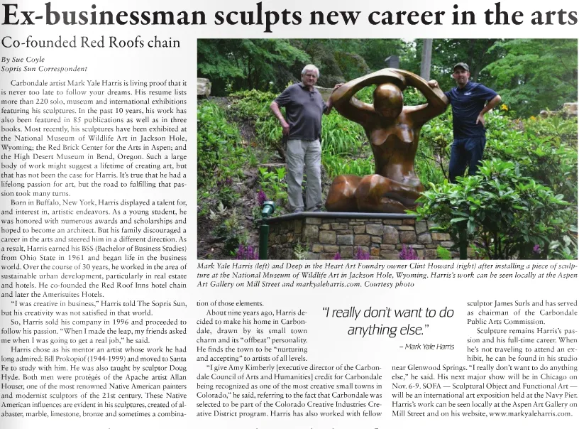Harris’s sculpture has been included in 80+ solo, museum and international exhibitions out of the 250+ exhibitions outlined on his resume. One Hundred+ publications have featured his sculpture (books, magazines, newspapers) in the past 10 years. In addition, ARTWORK international Inc. Press published Mark Yale Harris: Figurative Abstractions in 2010 and Mark Yale Harris: Untamed in 2011 as part of their Acclaimed Artist Series. As well, Mark Yale Harris, A Retrospective was published in 2006, updated and reissued in 2013. All three books document the important works created thus far in this sculptor’s career.