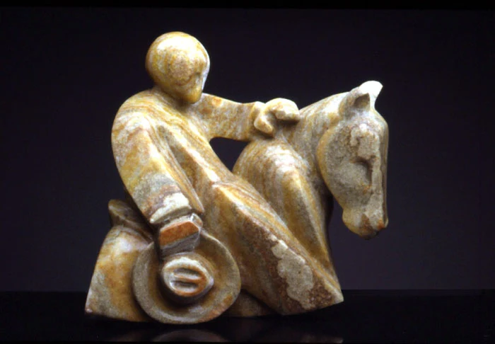 Mark Yale Harris realized his true passion in the Southwest. Stone carving became his life’s work, as Santa Fe became his home in the late 1990s. He dedicated himself to creating in 1996, and with much to learn, the artist chose a mentor whom he had long admired to assist with honing his burgeoning artistic skills, sculptor Bill Prokopiof (Aleut, 1944-1999). In the spirit of the nation’s most recognized Native American artist, Allan Houser (Chiricahua Apache, 1915-1994), Prokopiof and sculptor Doug Hyde (Nez Perce) took Harris under their wings and generously shared their immense knowledge, talent, and vision. Inspired by the geographical region and grounded in the wisdom of his teachers, he began feverishly creating sculpture.