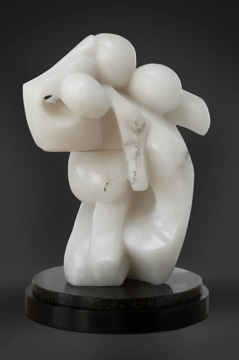 Transitioning into the life of a full-time artist required Harris’s passion to become his profession as well. Prior to developing as an artist, Harris spent many years in the area of sustainable urban development (specifically real estate and hotels), a conventional career in which he was quite successful, but not fully satisfied. The transition into a wholly fulfilling trade, was both challenging and exciting. The artistic passion that had existed just beneath the surface of Harris’s long established business persona was finally able to present itself in tangible form. He accessed the invaluable experience of his mentors, along with his own vision, to create an evolving body of work in alabaster, marble, limestone, and bronze, often combining different elements to bring forth a duality through creation.
