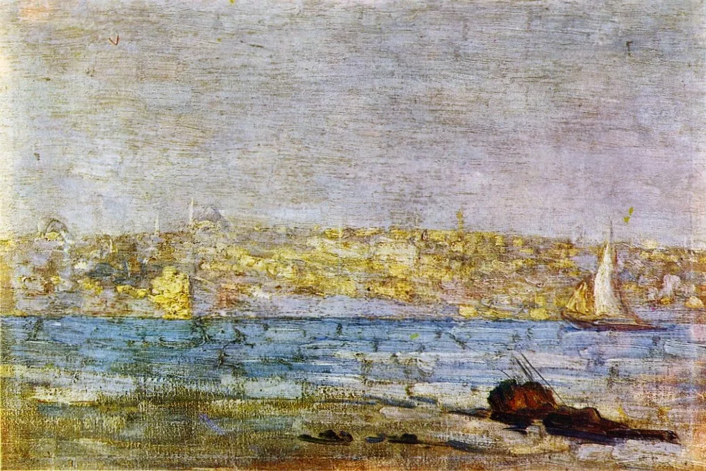 He did manage to obtain some private tutoring from Hoca Ali Riza then, following his father's death in 1902, he quietly enrolled at the Academy. He studied with the Italian Orientalist painter, Salvatore Valeri (1856-1946) and the sculptor Osgan Efendi, but had some difficulty adapting to the school's conservative teaching methods and came into conflict with Osman Hamdi Bey, the Director. A meeting with the French painter Paul Signac, who visited Istanbul while sailing around the Mediterranean, may have influenced his desired style. The conflicts continued and, in 1907, when he submitted his final exam pictures, he found his graduation delayed by a year.