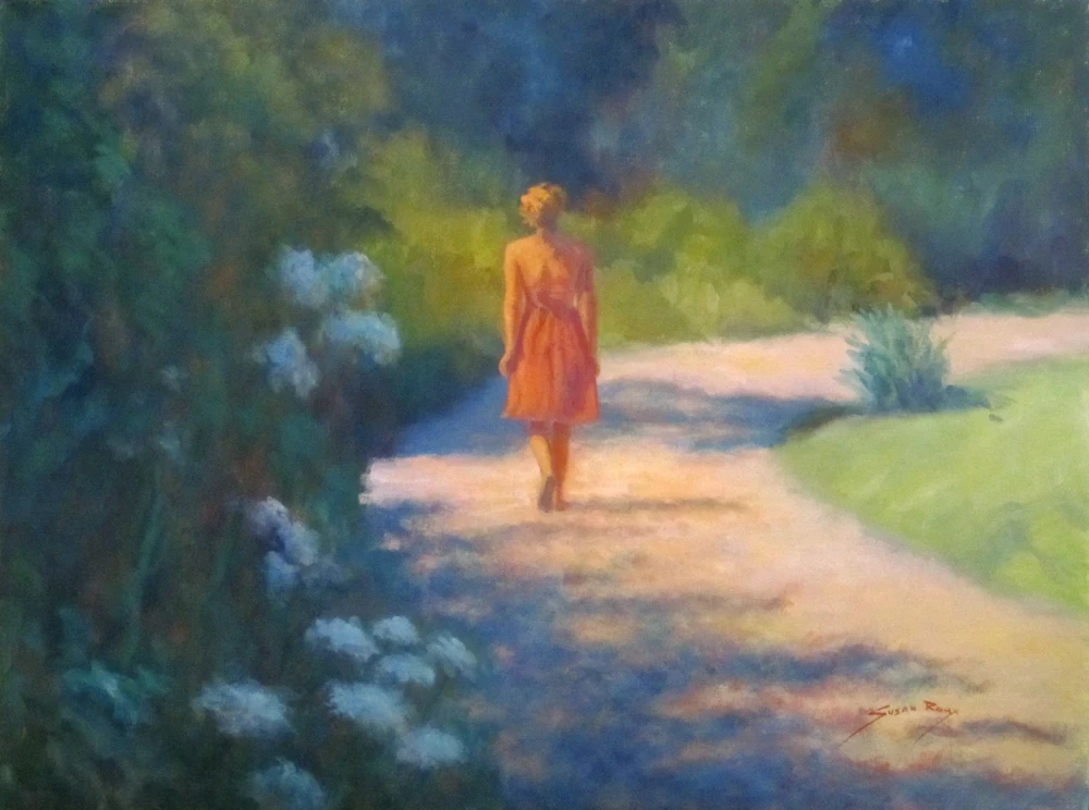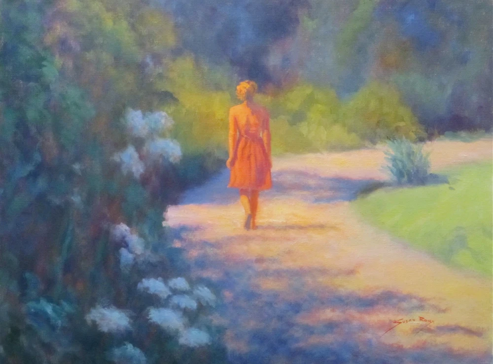 Roux’s natural creative voice is one of serenity. Whether figurative, still life or scenery, the viewer is always invited to enter into her world of peaceful intimacy. With color and gentle stroke she captures her emotion towards her subjects. Roux is fascinated with light and how it plays and dances on everything. When she paints the world seems to dissipate and that feeling of complete relaxation pours out on canvas. When one is pulled into her paintings, a feeling of calm overcomes them. Enter her world and feel life’s stress slip away…