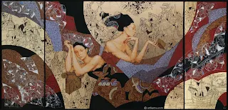 "Art of KAMU combines male and female - yin and yang, combines delicate feminine image with brutal scenes of battles or hunting. Yin - a passive, receptive, preserving, feminine world. Yan - is primarily active, pass, transforming, masculine world. Yin and Yang is quite natural complement each other, although in a sense opposed to each other.