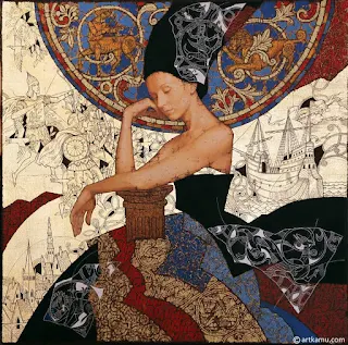 The paintings, which are created by artists also rich of the culture and art of the great eras. The works of KAMU giving us the image of a woman, lost in her reverie.