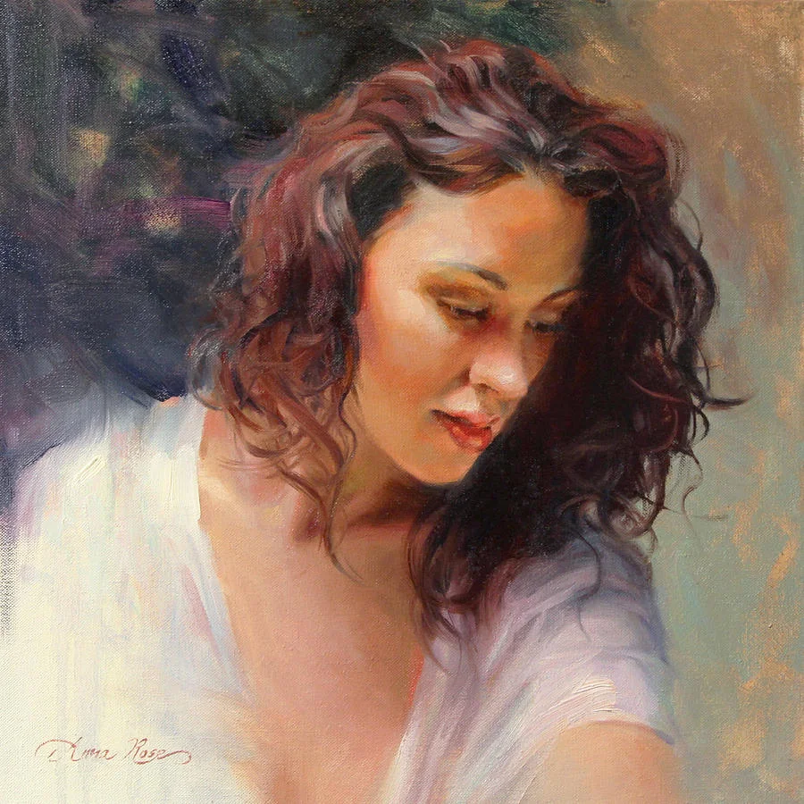 “My paintings are an expression of gratitude”, Anna says in her artist’s statement. “They often depict men, women, or children in peaceful settings or places that evoke happiness. My art focuses on the enjoyment of life, and is permeated with a love for nature, music, and all things good. My style might be considered “classical realism”, which attempts to idealize the subject while preserving its true essence. I hope that whoever views my work finds their senses awakened as they respond to the use of color, light, and tangible subject matter. I am captivated by those things that go beyond the surface, and I hope to convey this deep and abiding interest to everyone who sees my work".