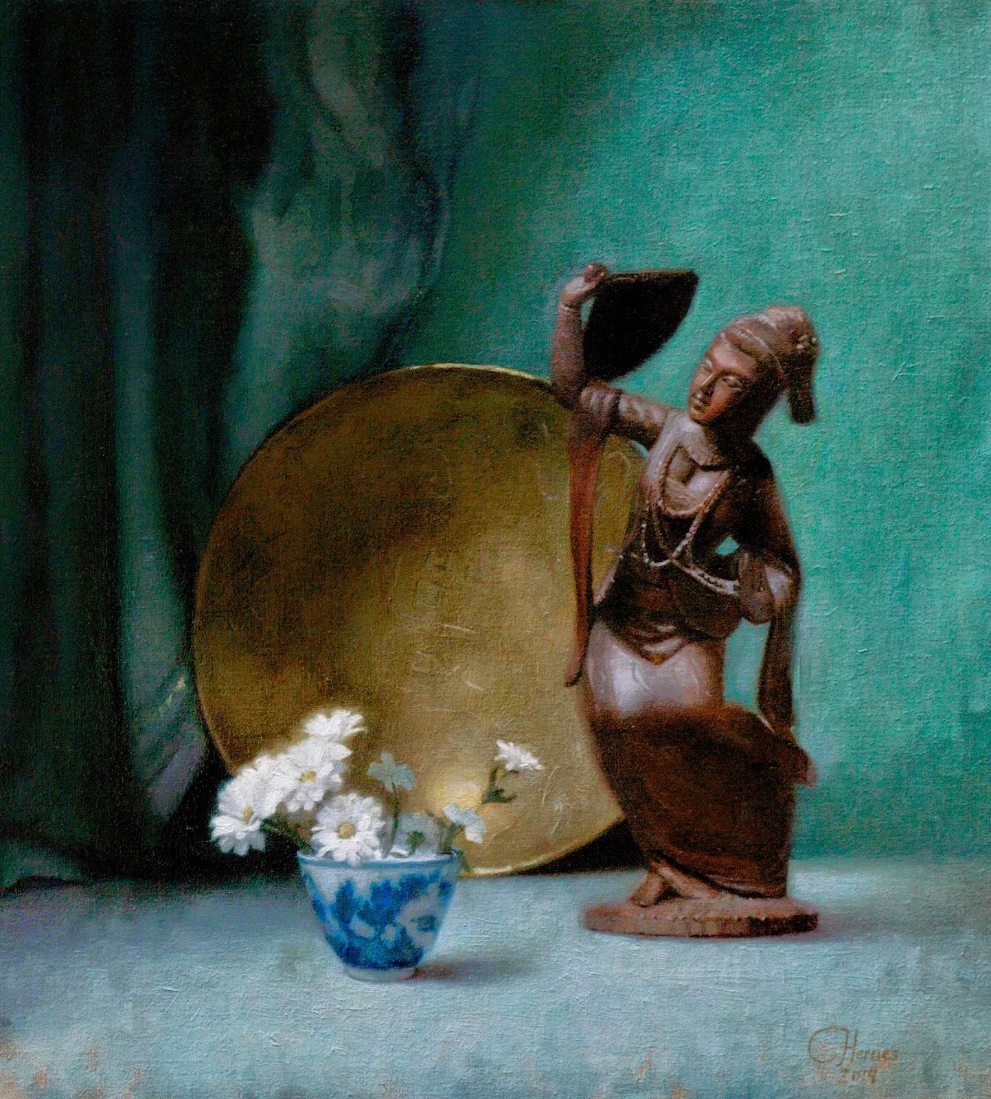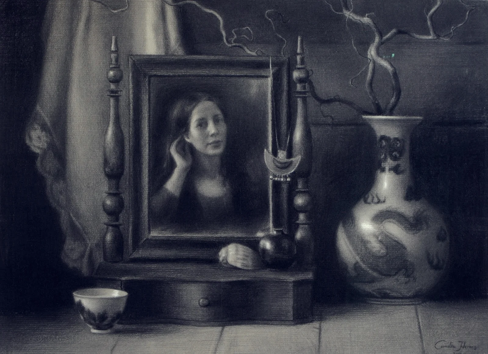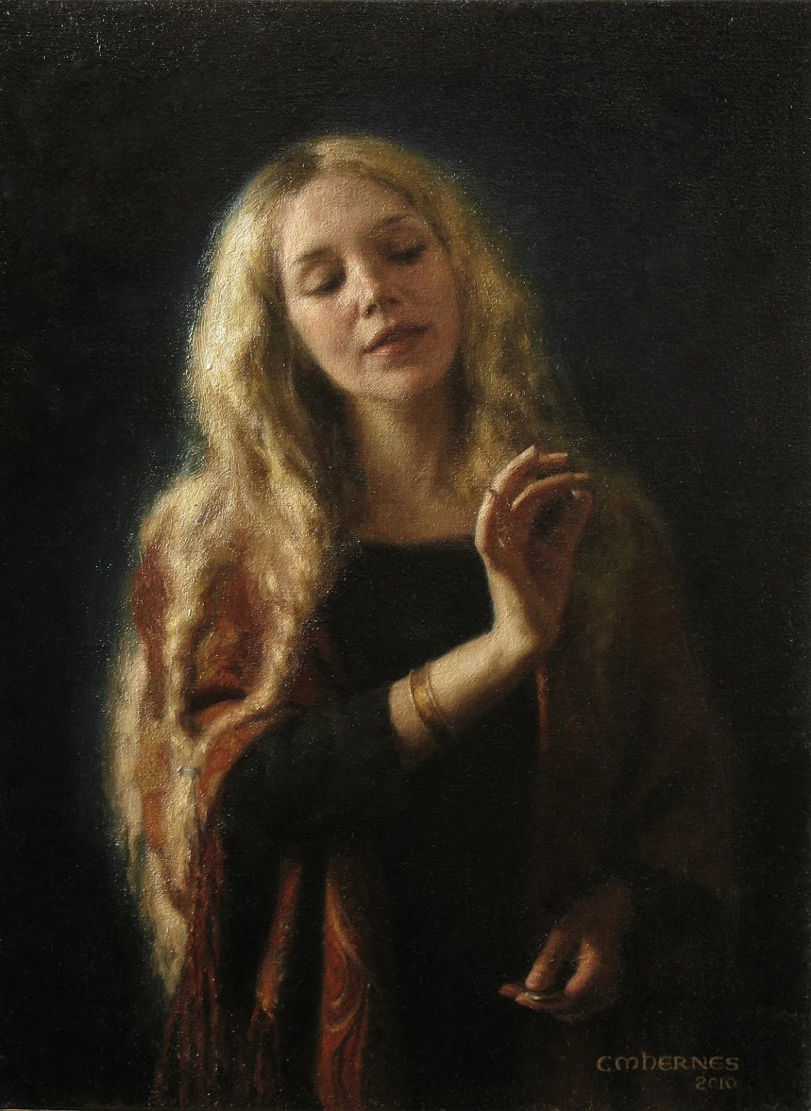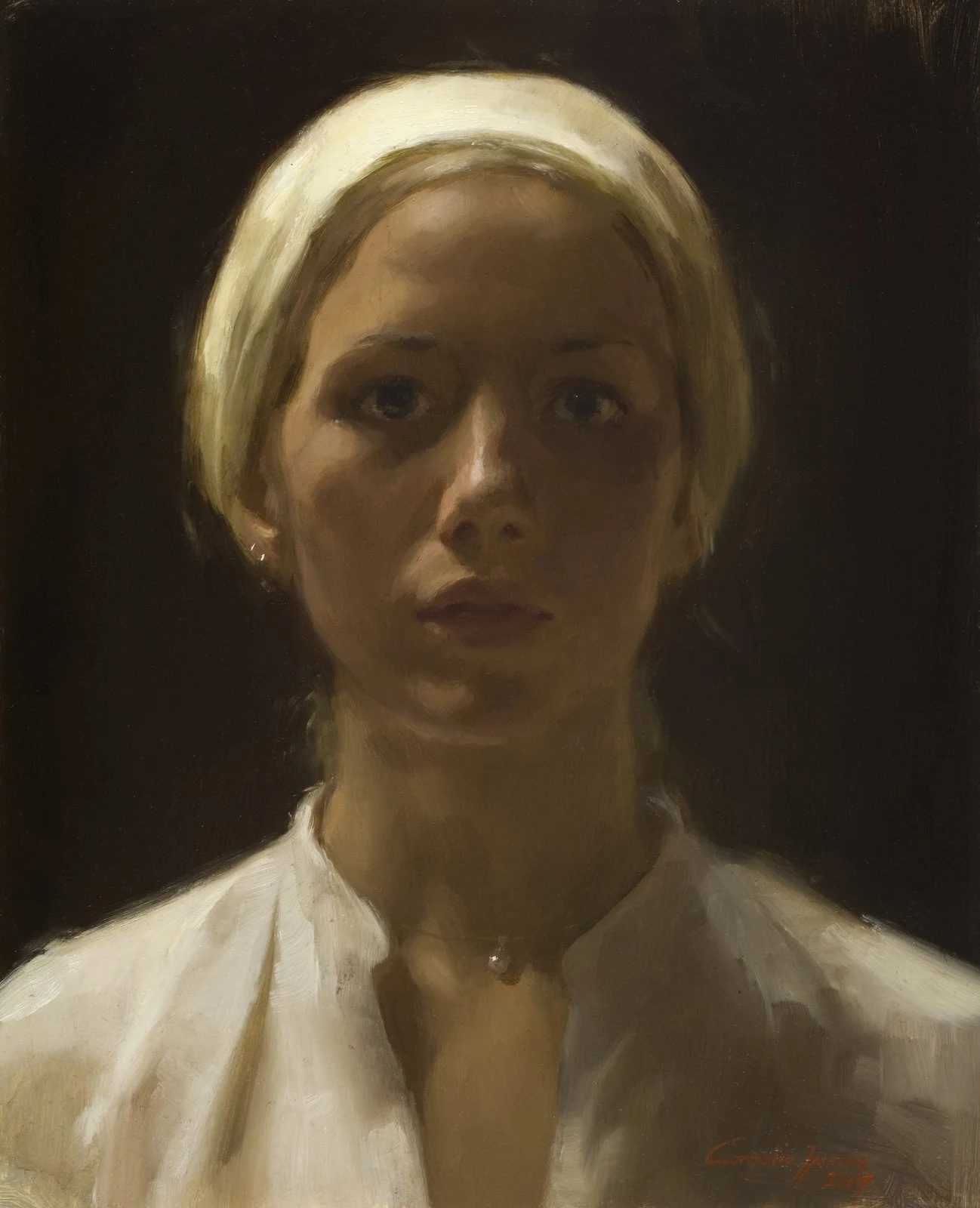 Since she began painting with oil on canvas in her late teens, Cornelia has been particularly interested in how to create a mood and a story through rendering human emotion and expression through a classical realist approach. Her interests within painting have expanded with time to include the serenity of still-lives, the intimacy of interiors and the archetypical power of mythological themes. She enjoys painting images that are open to creative and personal interpretations, as well as meditative paintings that celebrate the boundless beauty of nature and life.