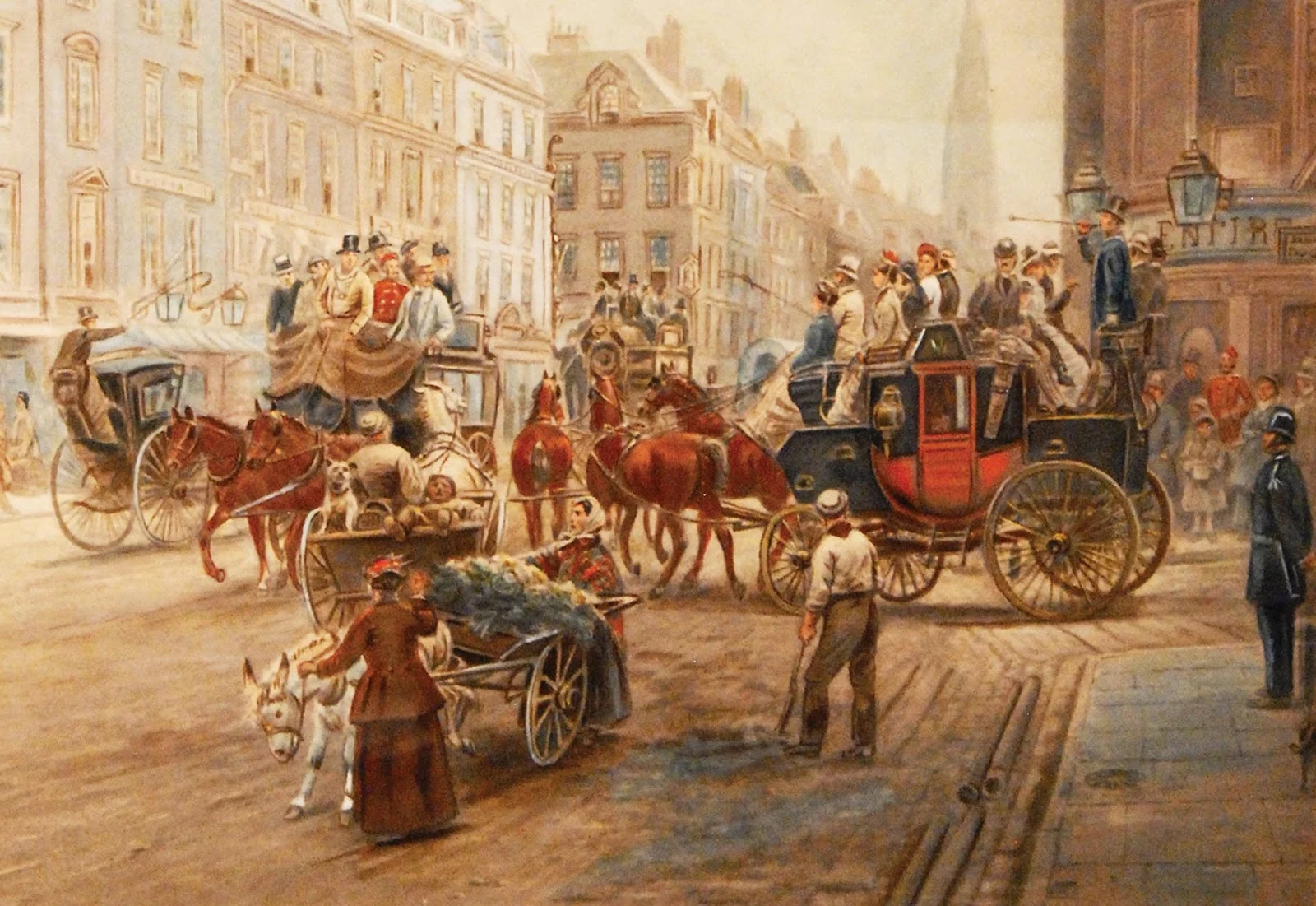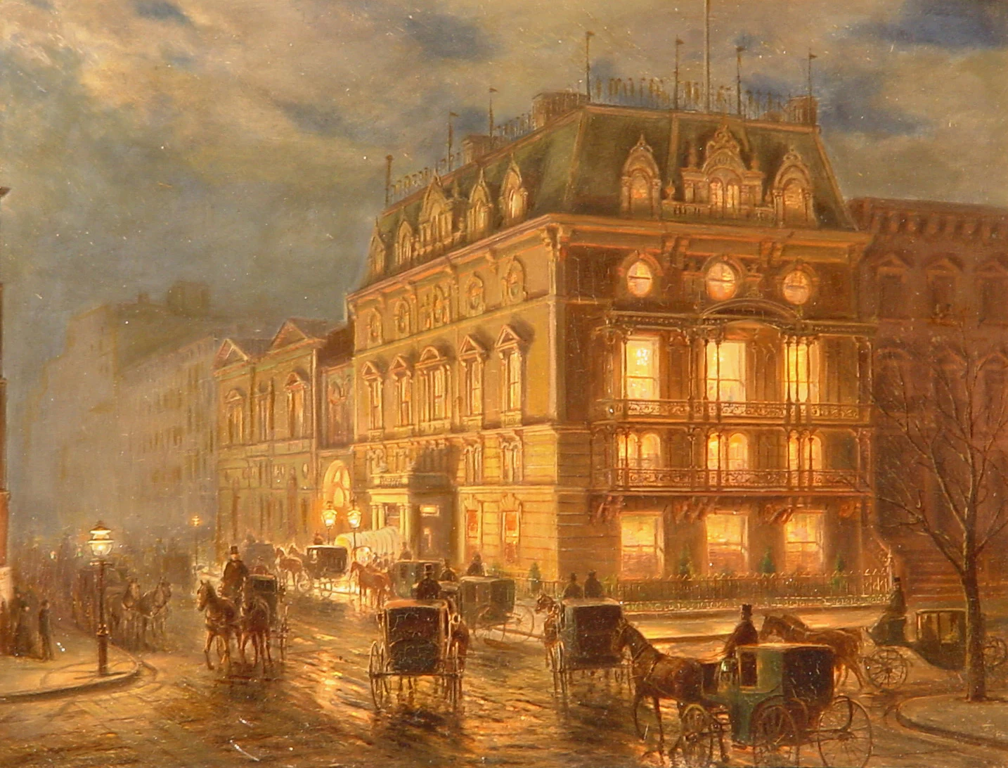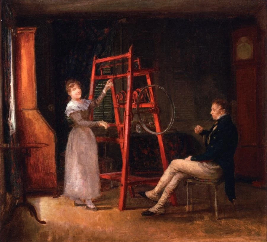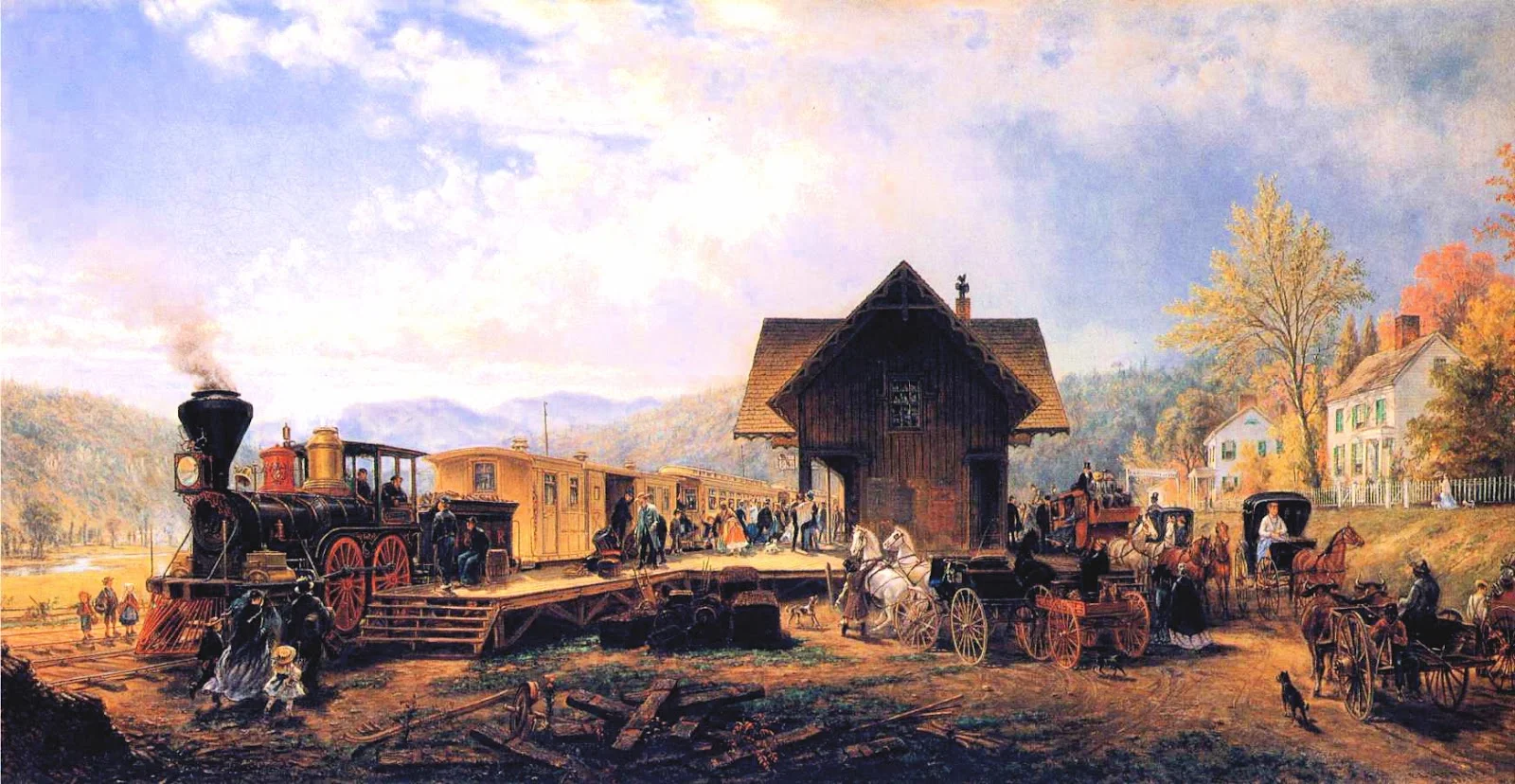 As a painter of colonial and early American themes and incidents of rural life, he displays a quaint humor. Among his best-known compositions are some of early railroad travel, incidents of stage coach and canal boat journeys, rendered with much detail on a minute scale.