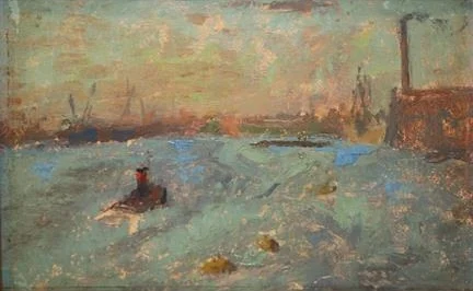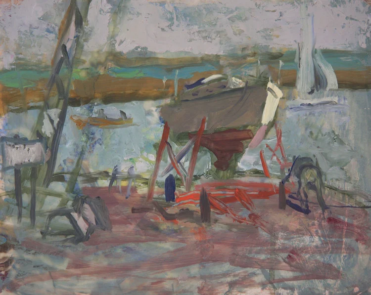 Rivers have played an important part in her life: the Norfolk Broads, near her father’s home, and the Thames at Shorne, Gravesend, Bankside, Greenwich and Cherry Garden Pier. In 1956 she bought her ‘Edinburgh eyrie’ with views over the Forth and the city. In 1972 she found a little boathouse studio on the quay at Orford in Suffolk, which served as her escape from London.