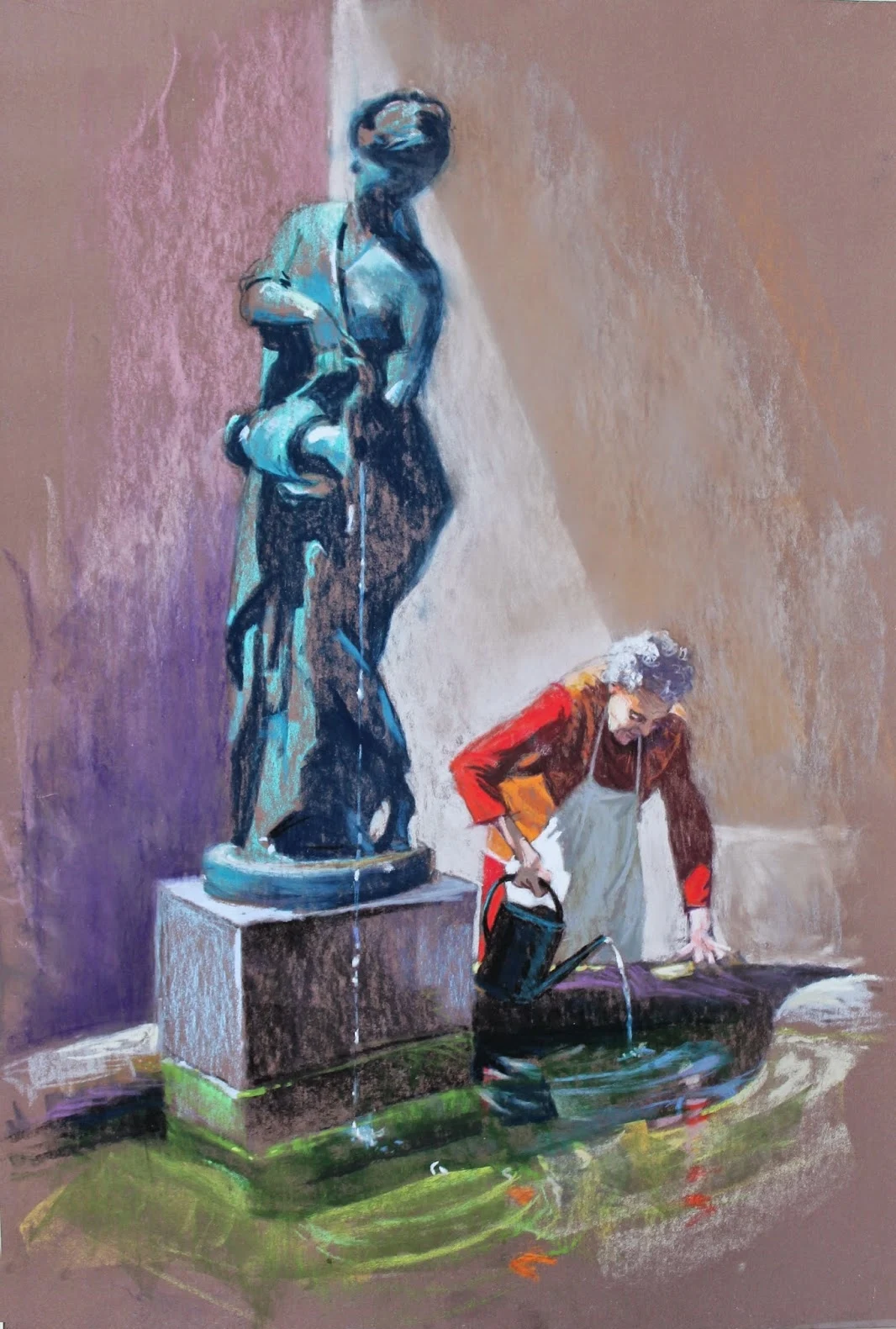 Since 2007, she has been painting in a larger format, in oil and pastel. She is primarily a portraitist; children, the elderly, all ages and ethnicities are grist to her mill.