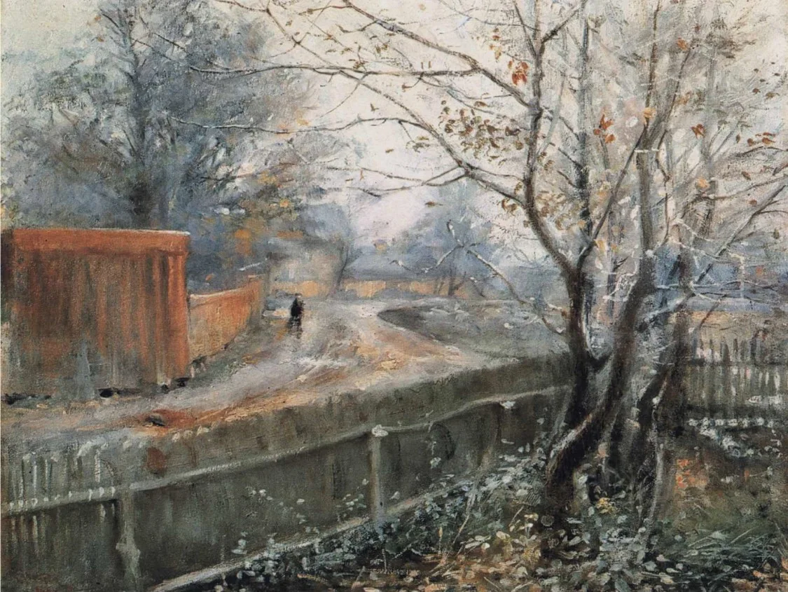 After studying at the Perséus school of painting, Nils Kreuger came to Paris in 1881. Under the influence of the French plein air style of painting he produced landscapes and cityscapes of Paris and its region, often at dawn or dusk, in the mist, rain or snow. In 1887 he returned home to Sweden and settled in Varberg, where he from 1893 painted together with Richard Bergh and Karl Nordström.