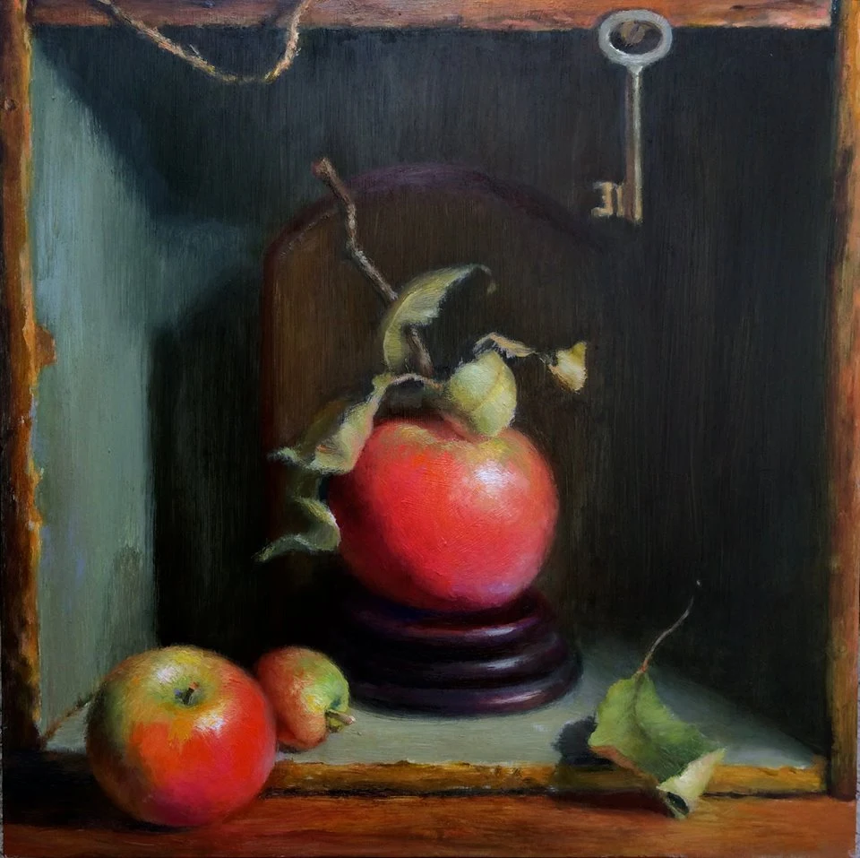 Her work is a constantly evolving dialog of peaceful realist still life paintings reflecting the joys and complexities of everyday life. You can enjoy her work today knowing that a common thread that brings her current series of works together will surely inspire a whole new exploration of visual ideas in her next series.