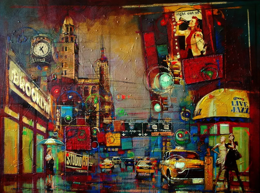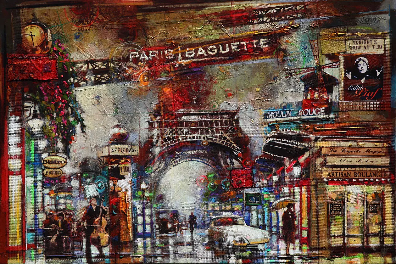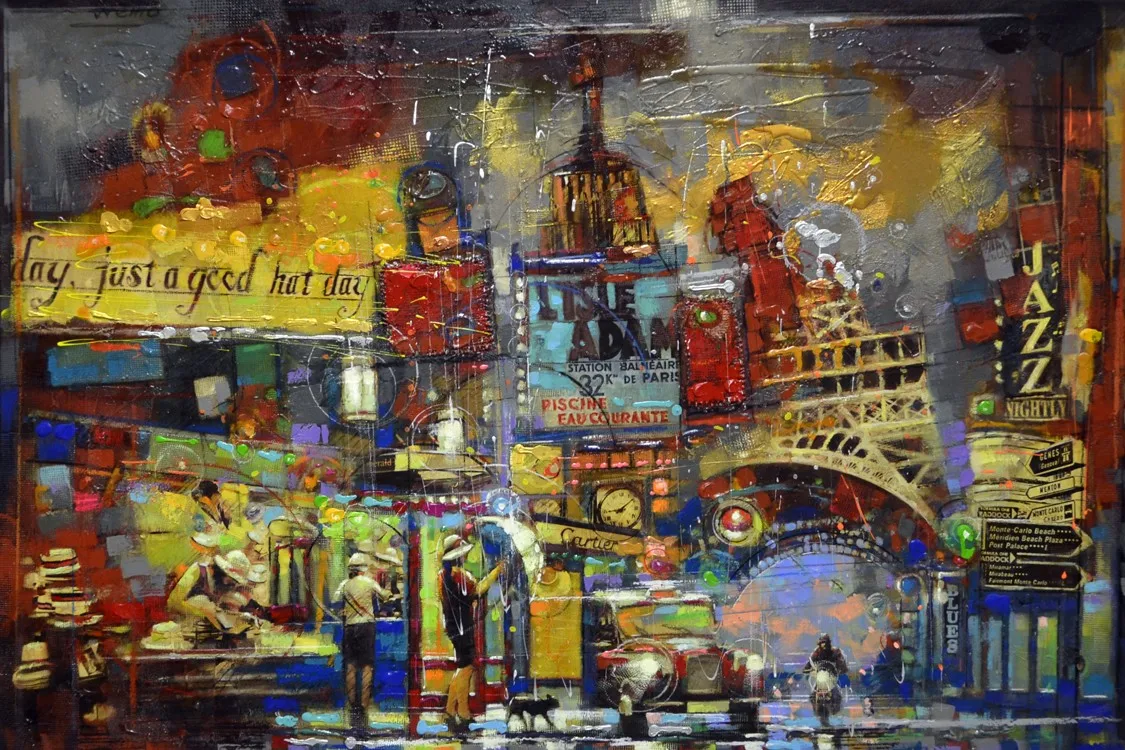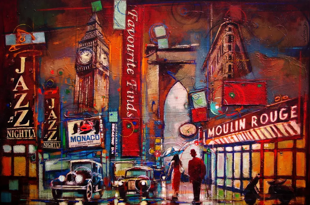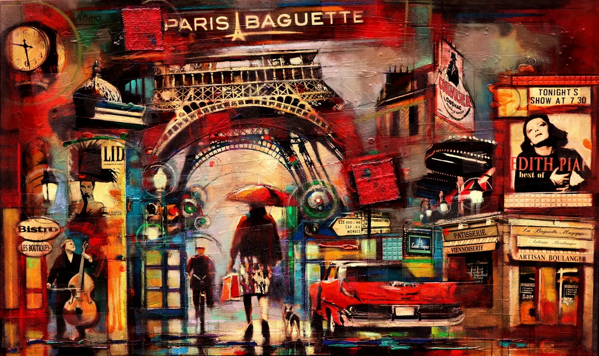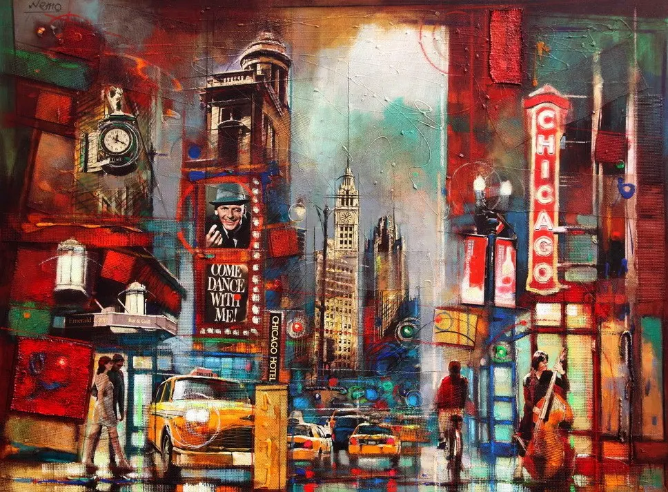 The prevalent theme in Nemo's work is travel and the discovery of the beauty and excitement of new places. His distinctive images draw together the charm and mood of several famous cities at once to create a dreamlike memory of time and space in a fascinating combination of mixed media.
