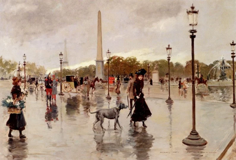 A fine example of his work is in the Musée Carnavalet in Paris and depicts the Champs-Elysées in the early 1900s, with numerous horse drawn carriages, and Parisian Society parading in their finery.