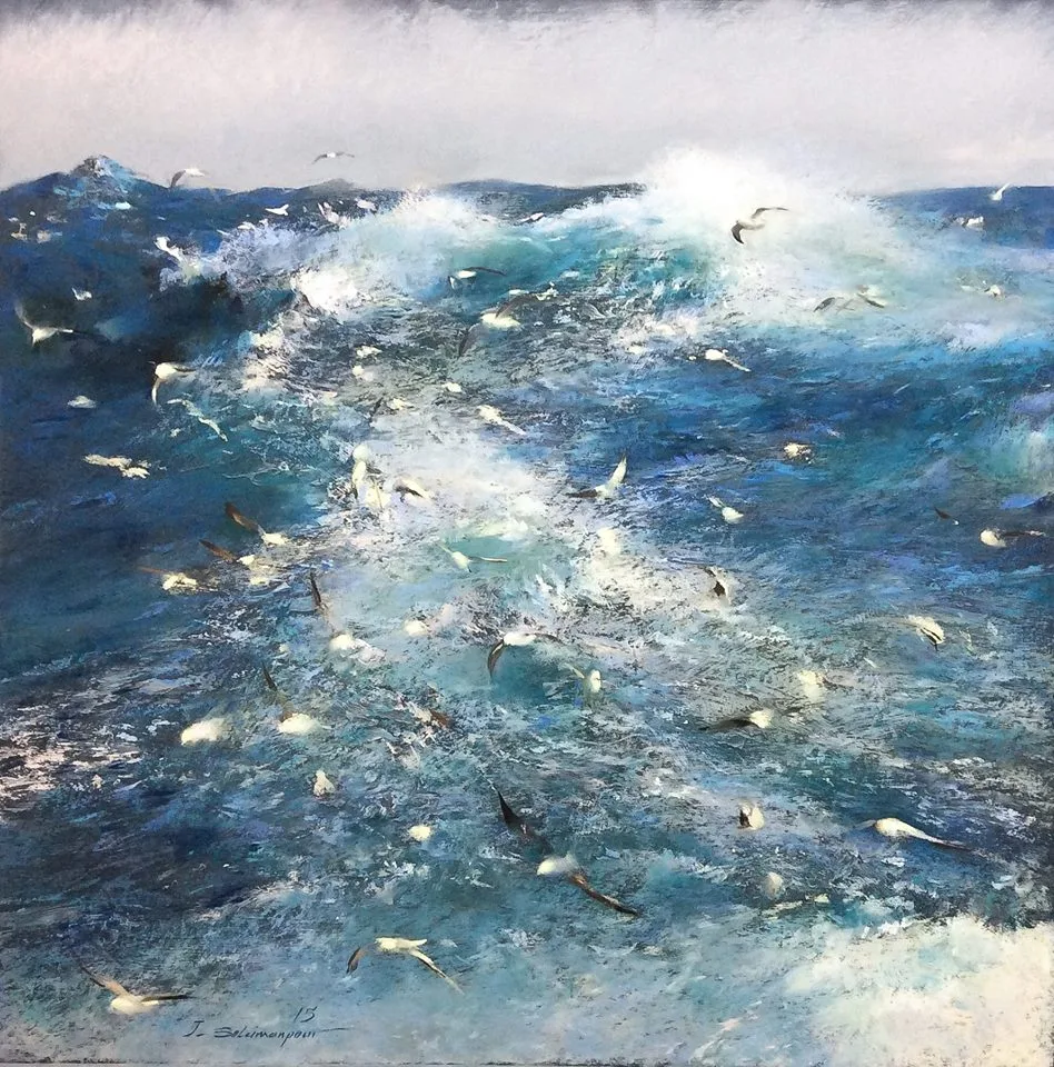 He himself had no idea he had been entered for the competition by one of his students. The winning painting was a stormy seascape with the Haydarpasa lighthouse – Soleimanpour has lived for the last five years on the shores of the Sea of Marmara that connects both to the Black Sea and the Aegean – no lack of subject matter with seven lighthouses on Istanbul’s shoreline