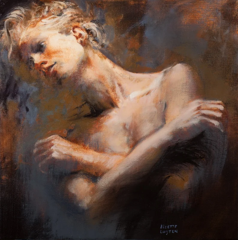 So, for Lizette, painting is a search for rest and strength, vulnerability and distance, intimacy and publicity. These contrasts are for Lizette most recognizable in a woman. For this reason she paints almost exclusively female bodies.