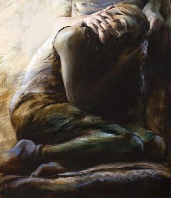 A head between the knees or hands hopefully stretched ahead. There is life in the paintings. But as for a real person you learn to know the painting in the course of years. And just like a real human this attribute is the reason that you can get none enough of her work.