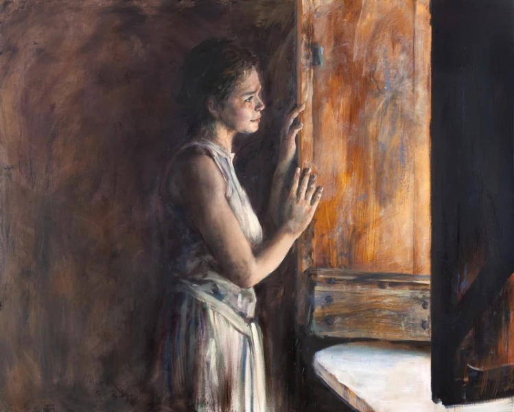 The careful combination of oil paint colours, do not form a photographic view of reality, but an imagination of a visual experience. They create a explanation of the relationship between model and artist.