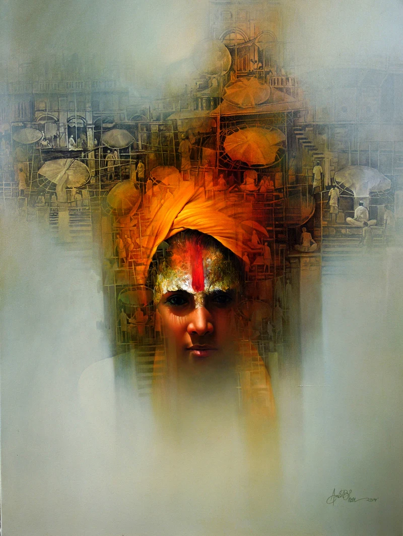 Amit Bhar can capture every subject on his canvas. In a nut shell, his paintings let the viewer to re-examine the threshold between illusion and reality, between waking and dreaming.