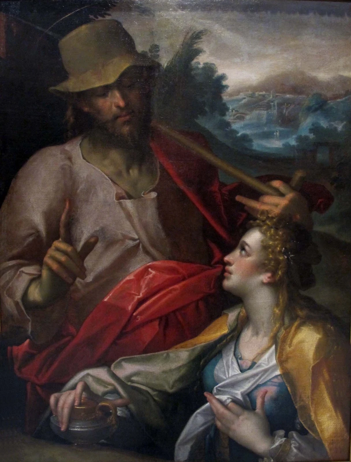 The figures smile invitingly, and the influence of Parmigianino and Correggio is evident in their voluptuous contours.