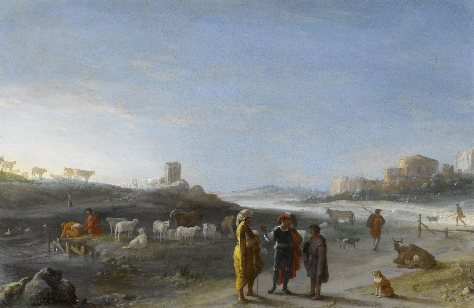 Pittore Olandese, molto noto per i suoi paesaggi, Cornelis van Poelenburgh (1586-1667) è tra gli artisti che hanno aspirato allo stile dei maestri, e con questo si intende lodare e non sminuire il suo lavoro. Si è detto che si sforzasse di "catturare" le figure umane come riusciva a fare Raffaello (1483-1520), e di dipingere i paesaggi come il maestro del Barocco, Claude Lorrain (1600-1688). Queste aspirazioni erano accresciute dall'influenza dell'innovatore nel campo dei paesaggi Adam Elsheim (1578-1610), nato in Germania, ma italiano per stile.