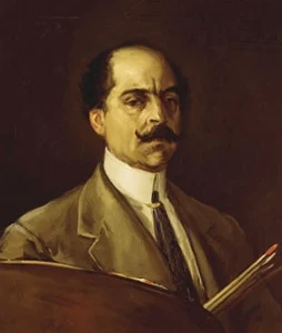 He made fine copies of some of the paintings by Goya in the Prado and became a protégé of the well-known collector José Lázaro Galdiano, for whom he executed several mural paintings to decorate his house in Calle Serrano - now converted into the museum that bears his name - among them one of Goya rodeado de sus modelos ("Goya Surrounded by His Models").