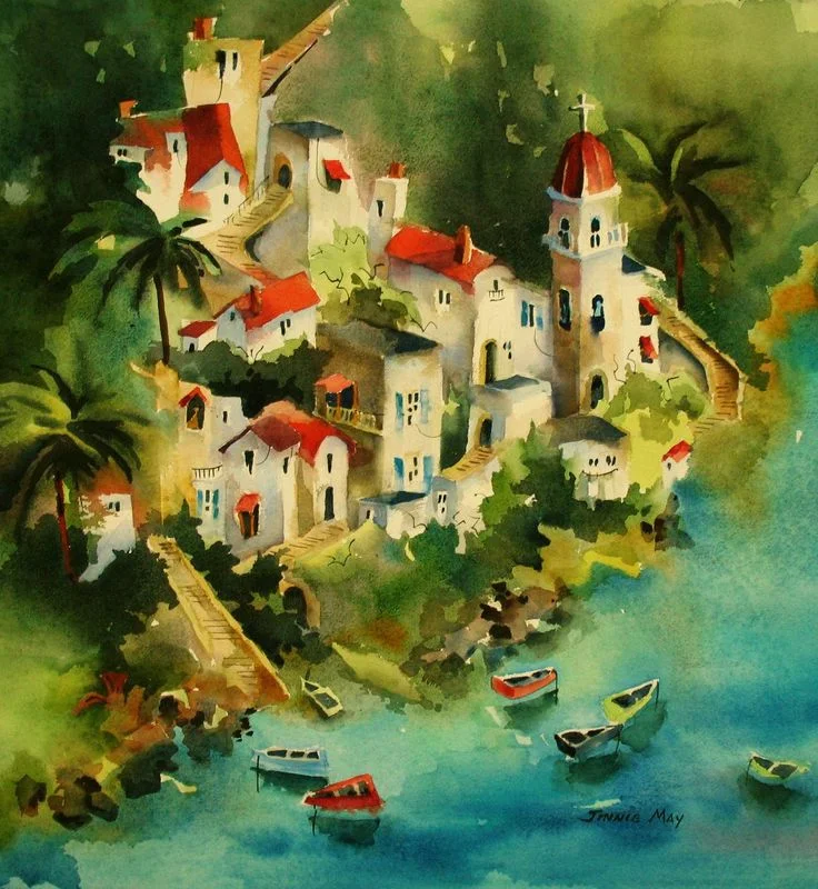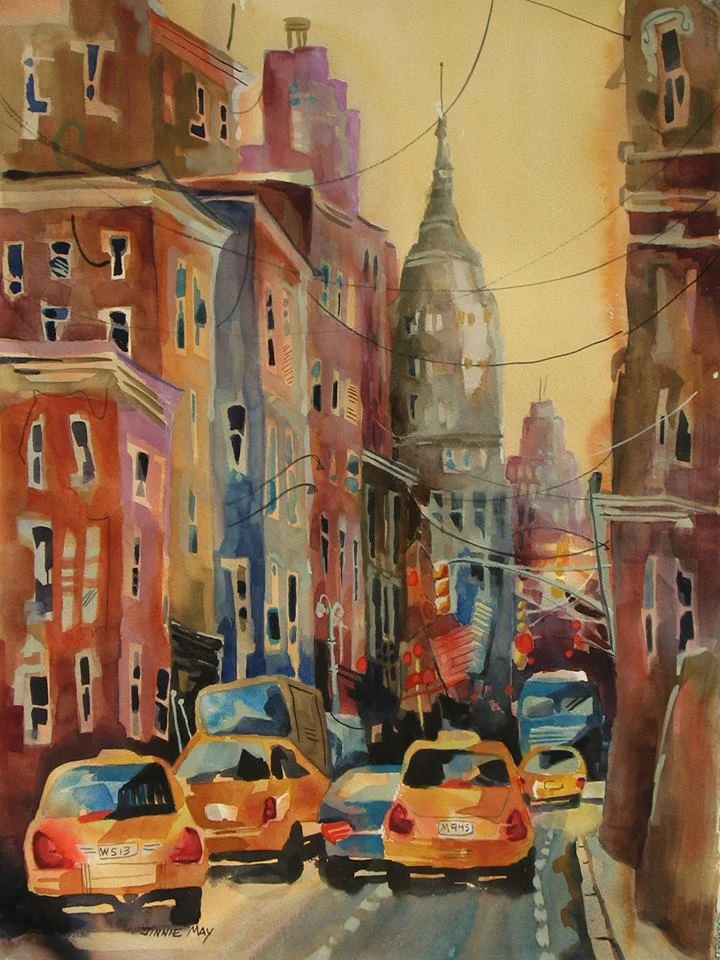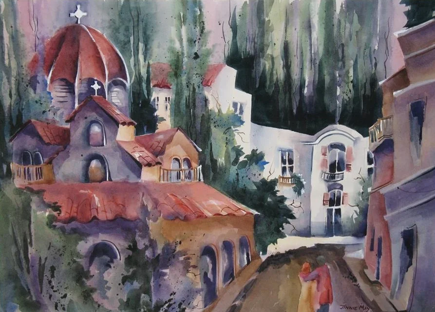 From her holidays spent traveling around the United States and Europe, she has acquired a taste for a wide range of subject matter from city and seascapes, to architecture. In her paintings, she tries to give life to old buildings in a city and urban scene. Jinnie attributes her distinct style to being slightly askew, both in sight and insight.