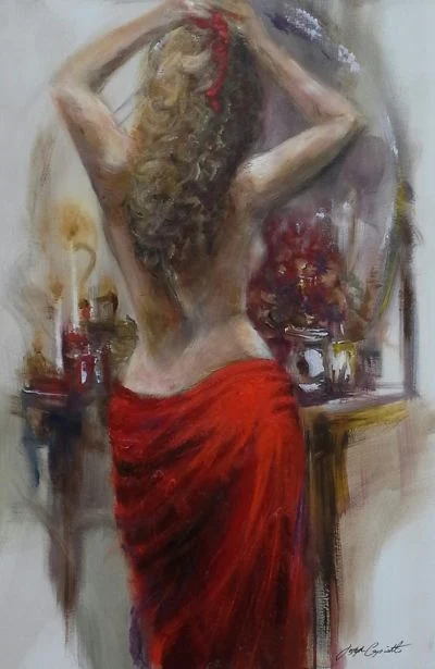 Joe's wealth of experience in light, colour, form and dimension is seen in the natural transition he brings to the canvas. His pieces resonate with carefree passion. His figurative paintings embrace the elegant features of the human figure with a romantic flowing style. Many of his pieces express a sense of reality and dream at the same time. They evoke feelings of mystery, passion and intrigue.
