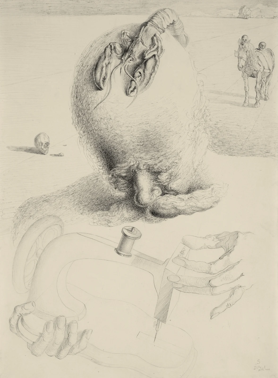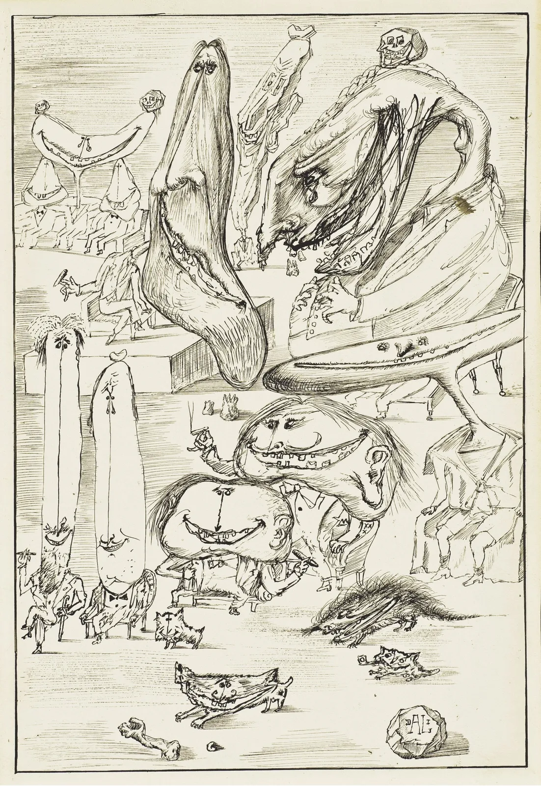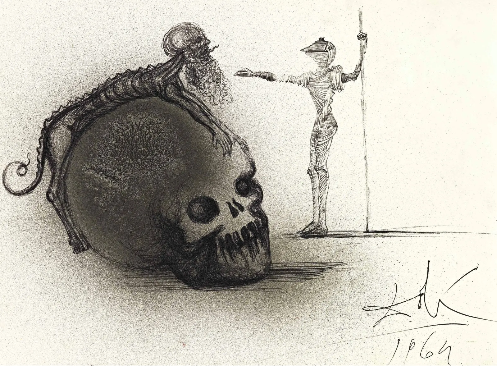 Dalí also produced illustrations for many books besides his own, most of the time these consisted of drawings. A brilliant example of this is Dalí drawing Macbeth for an edition of the play Macbeth by Shakespeare. This incredibly detailed work of art is a monstrously mind-bending illustration of the highest caliber. Because it is a drawing in comes to life in a way that a painting can’t, real, honest, and vibrant.