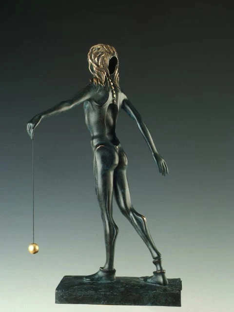 This sculpture was born of Salvador Dalí's respect for Sir Isaac Newton and his discovery of the law of gravity, represented by the famed falling apple. Dalí has pierced the figure with two large spaces: one which portrays the absence of Newton's unique physical body, while the other space clearly displays the lack of his singular mind.