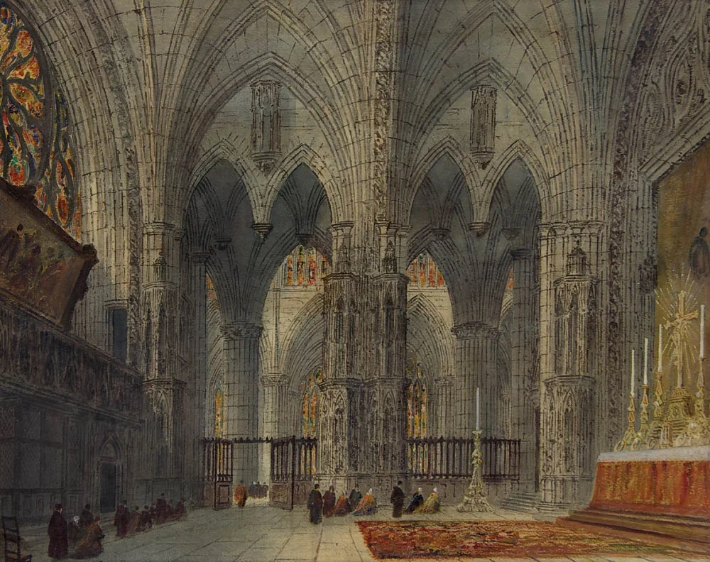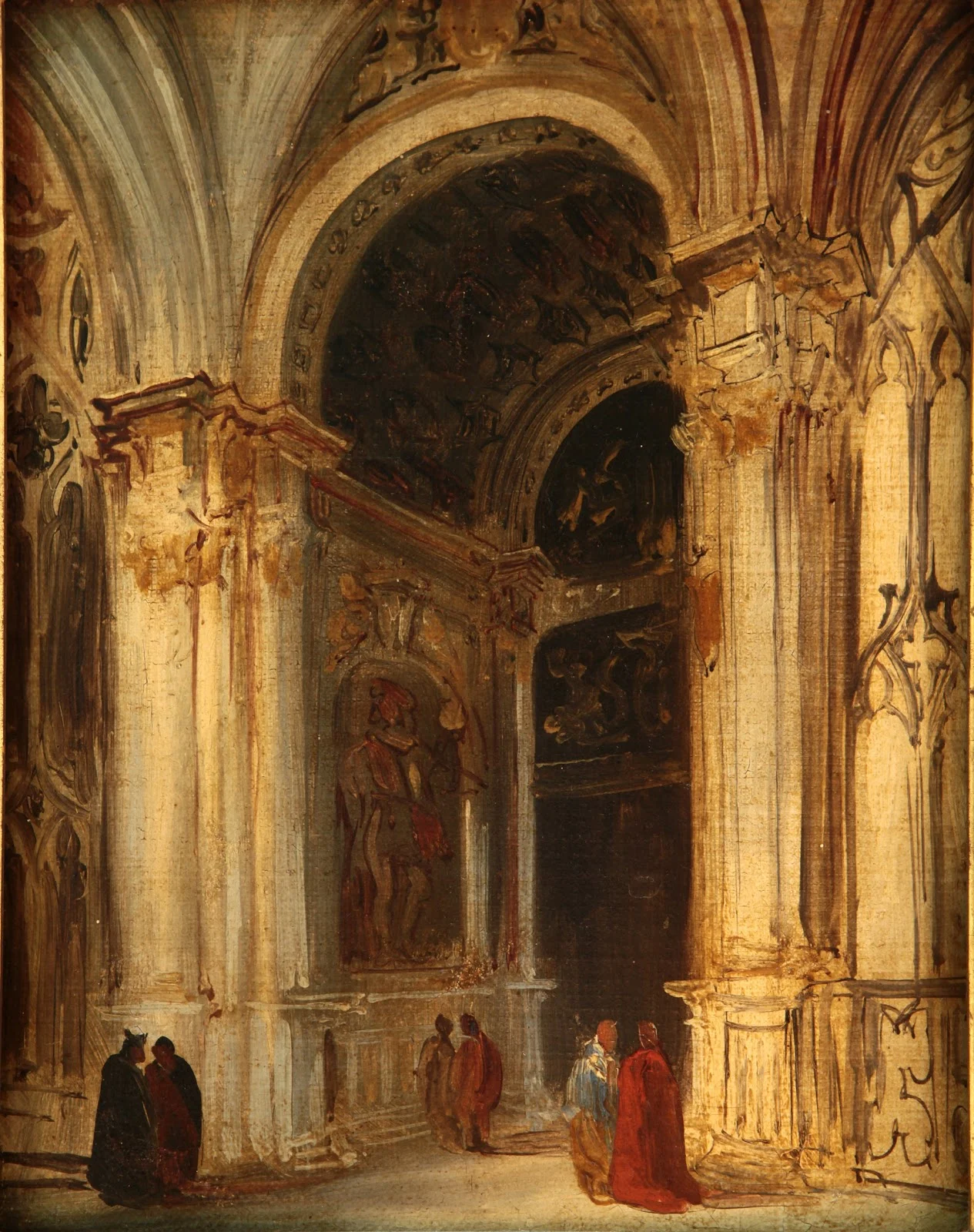 From 1840-1844 Pérez Villaamil travelled abroad visiting Belgium and the Netherlands, where he made many small pictures, watercolours and drawings of their cities and monuments. He also spent considerable time in Paris, where he began to publish his España artística y monumental, the most important collection of lithographs of monumental views of Spanish cities of this type made by a Spanish artist and a splendid testament to the monumental and picturesque conception of travel in the Romantic world.
