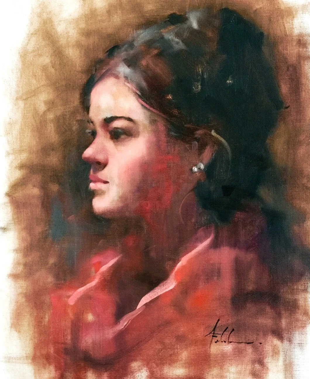 Her art education began at the School of the Art Institute of Chicago, and she continued her studies in the ateliers of some of the leading contemporary artists in the United States today, namely a five year mentorship with Margaret Carter Baumgaertner in portraiture.